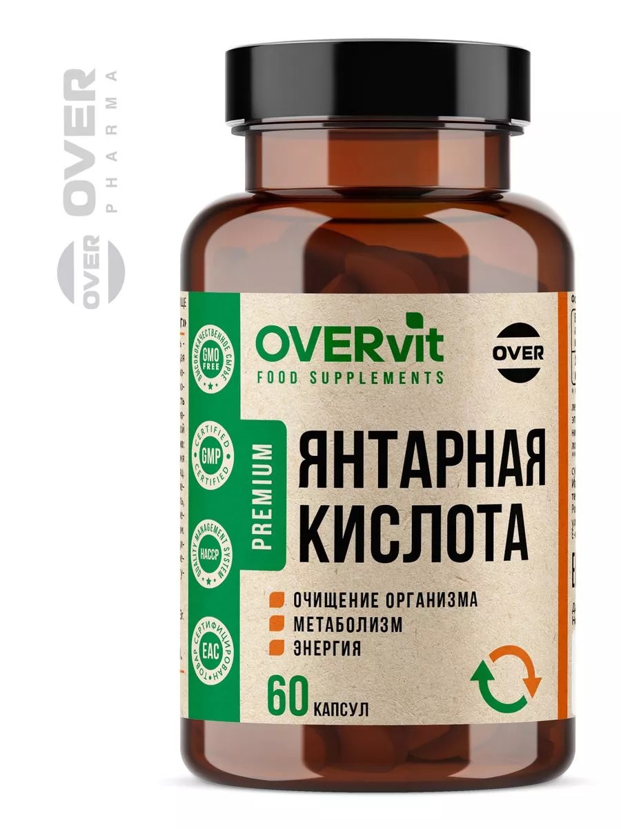 OVER Янтарная кислота БАД витамины для энергии, 60 капсул
