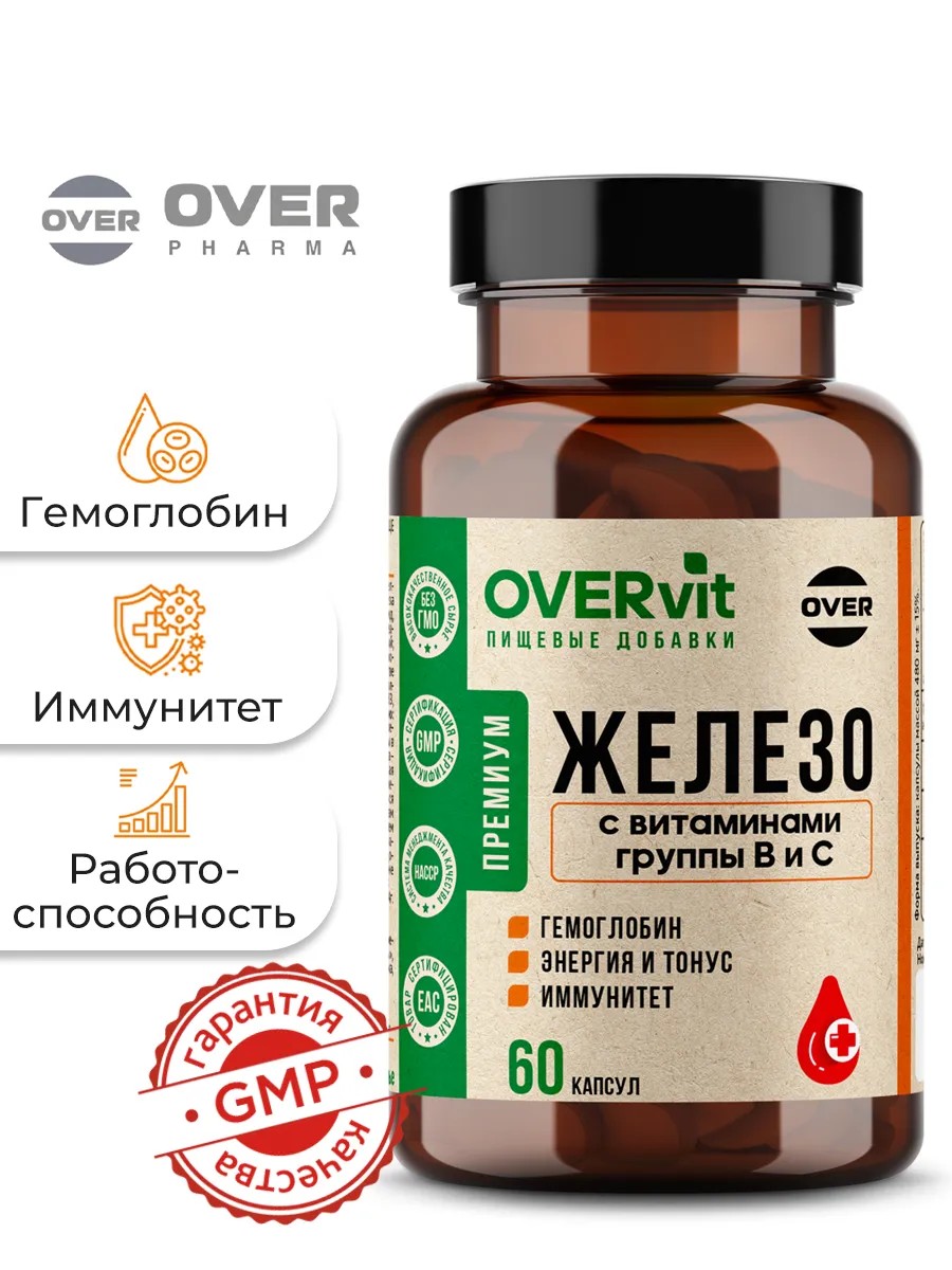 OVER Железо с витаминами группы В и С, 60 капсул