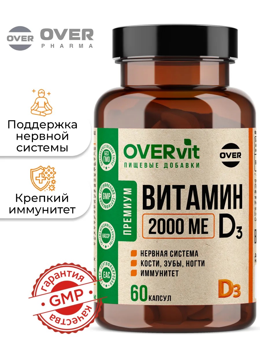OVER Витамин Д3 2000МЕ, для иммунитета, 60 капсул