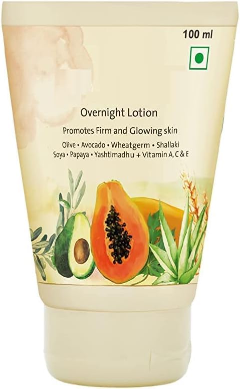 Overnight Lotion is a quick-absorbing, Paraben-Free formula with feather-light texture, suitable for all skin types – DRY, NORMAL, OILY COMBINATION. The rich, comforting formula, fortified with potent ingredients replenish the lost nutrients while you are asleep, like: Antioxidants like Olive, Avocado Wheatgerm - Repairs daily damage and nourishes the skin Shallaki and Soya - Boost collagen synthesis and improves skin elasticity Papaya - Exfoliates the skin and restores radiance Liquorice - Reduces blemishes and improves skin complexion Aloe – Hydrates the skin and makes it plump