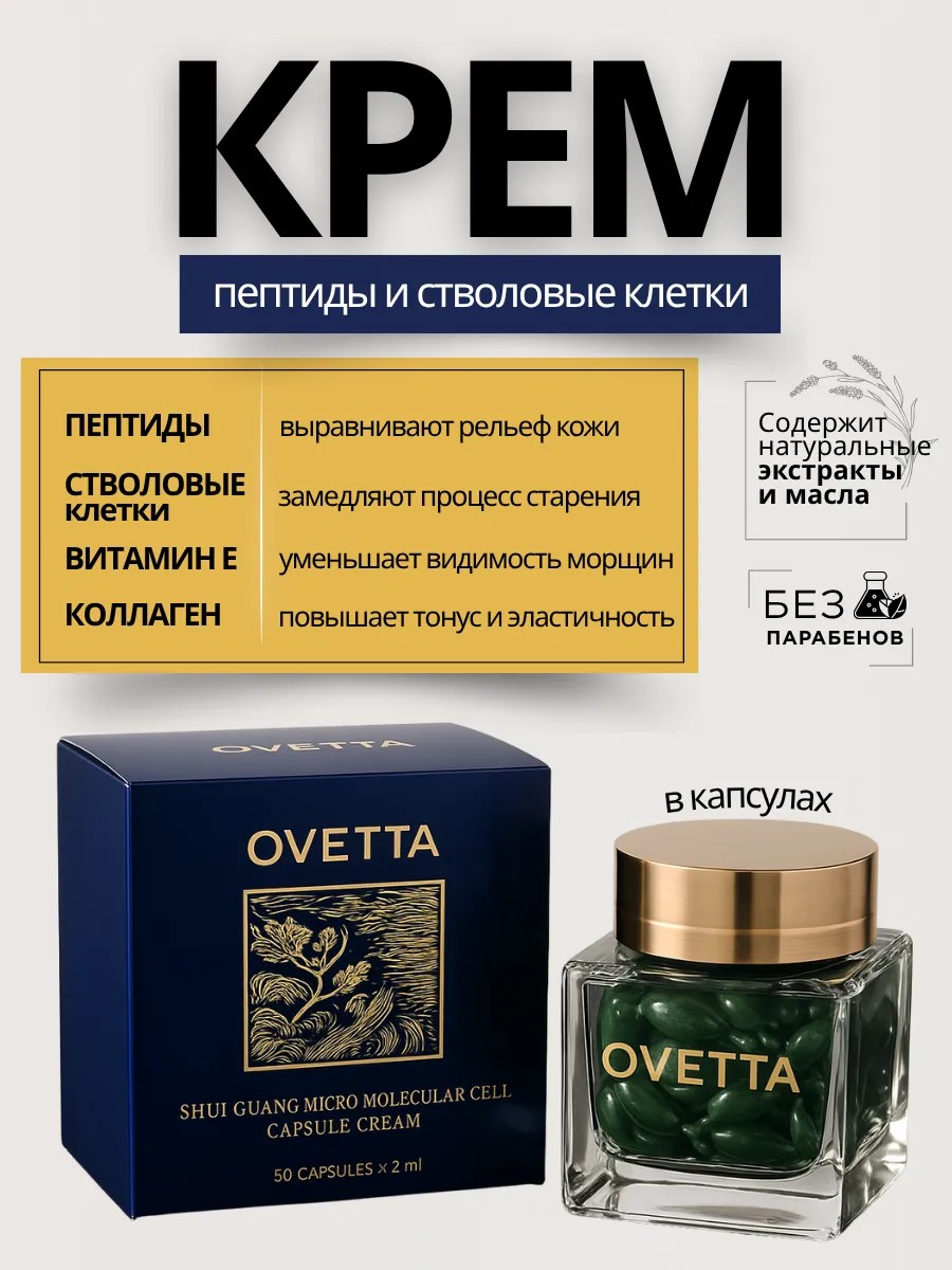 Представляем вам капсульный крем OVETTA Shui Guang Micro Molecular Cell Capsule Cream — концентрированное средство с интеллектуальной формулой, разработанное по принципу «всё в одном»: увлажнение, восстановление, омоложение и сияние кожи.