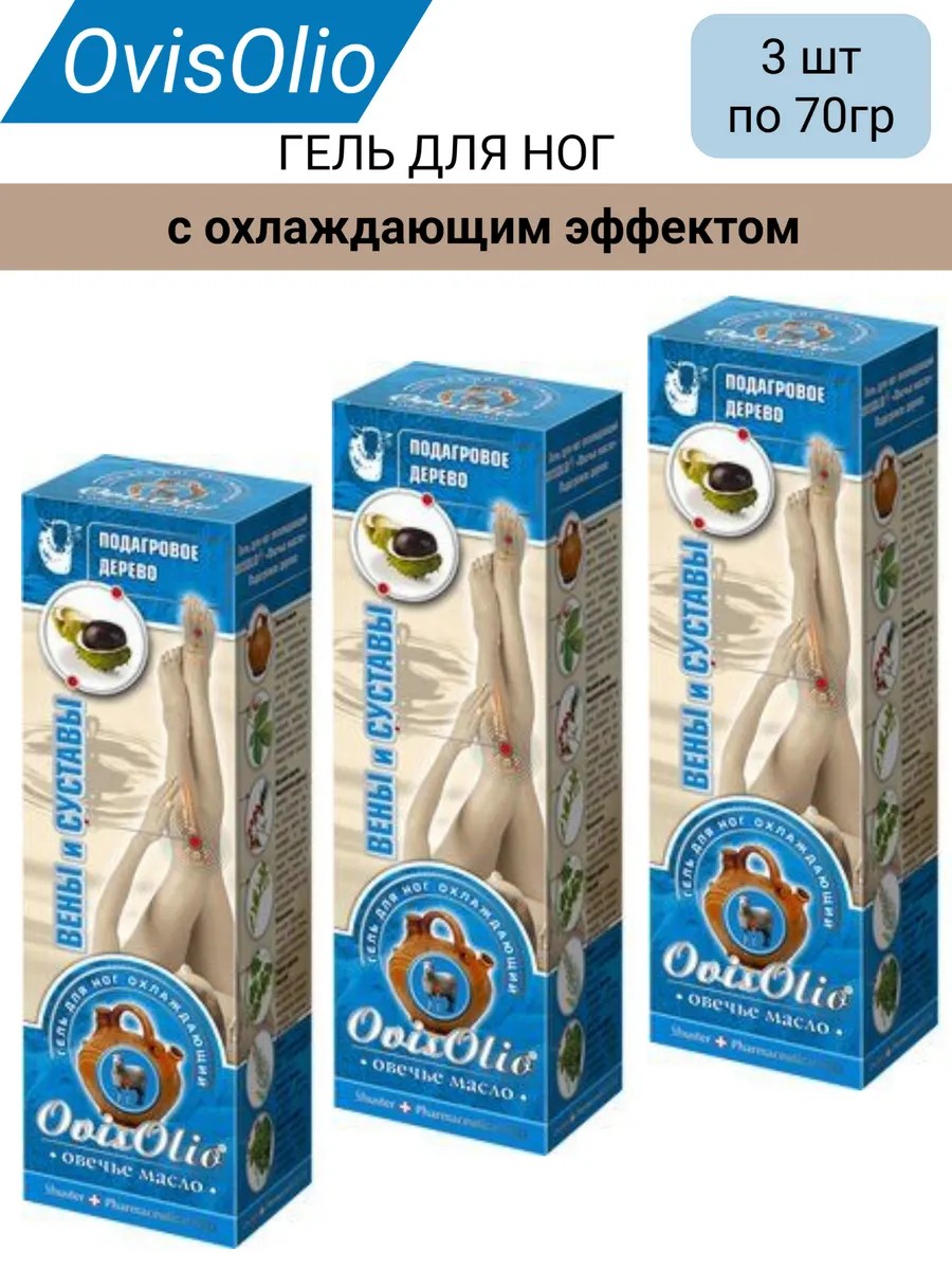 OVISOLIO ГЕЛЬ ДЛЯ НОГ ОХЛАЖДАЮЩИЙ ОВЕЧЬЕ МАСЛО-ПОДАГРОВОЕ ДЕРЕВО 70,0/3шт