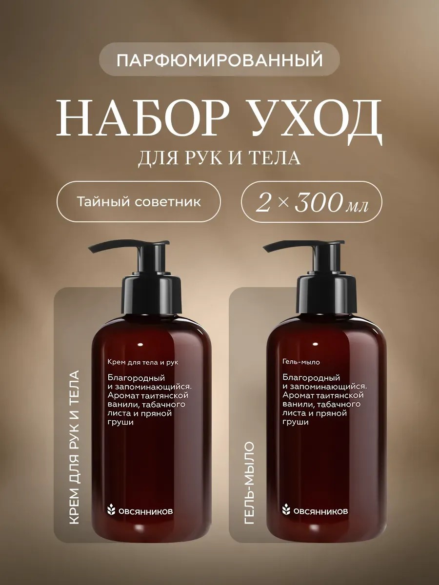 Подарочный набор уходовой косметики из крема для тела и рук и мыла для рук Овсянников — это идеальный вариант для тех, кто ценит качественный уход и благородный аромат серии Тайный советник.