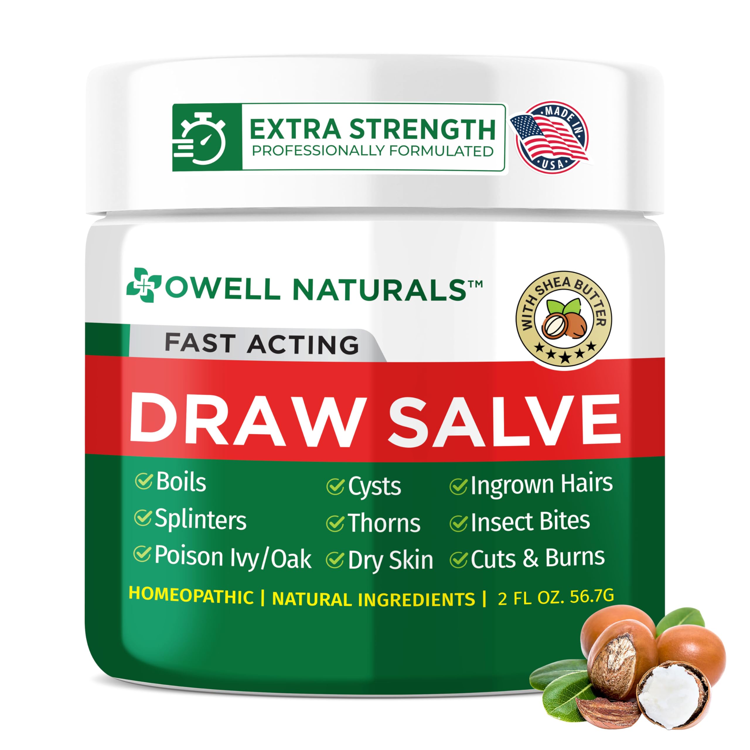 Owell Naturals Drawing Salve Ointment with Pure Shea Butter for ingrown Hair Boil Splinter Remover Bug Spider Bites Bee Sting Mosquito Itch Poison Ivy Burns & Cuts 2oz