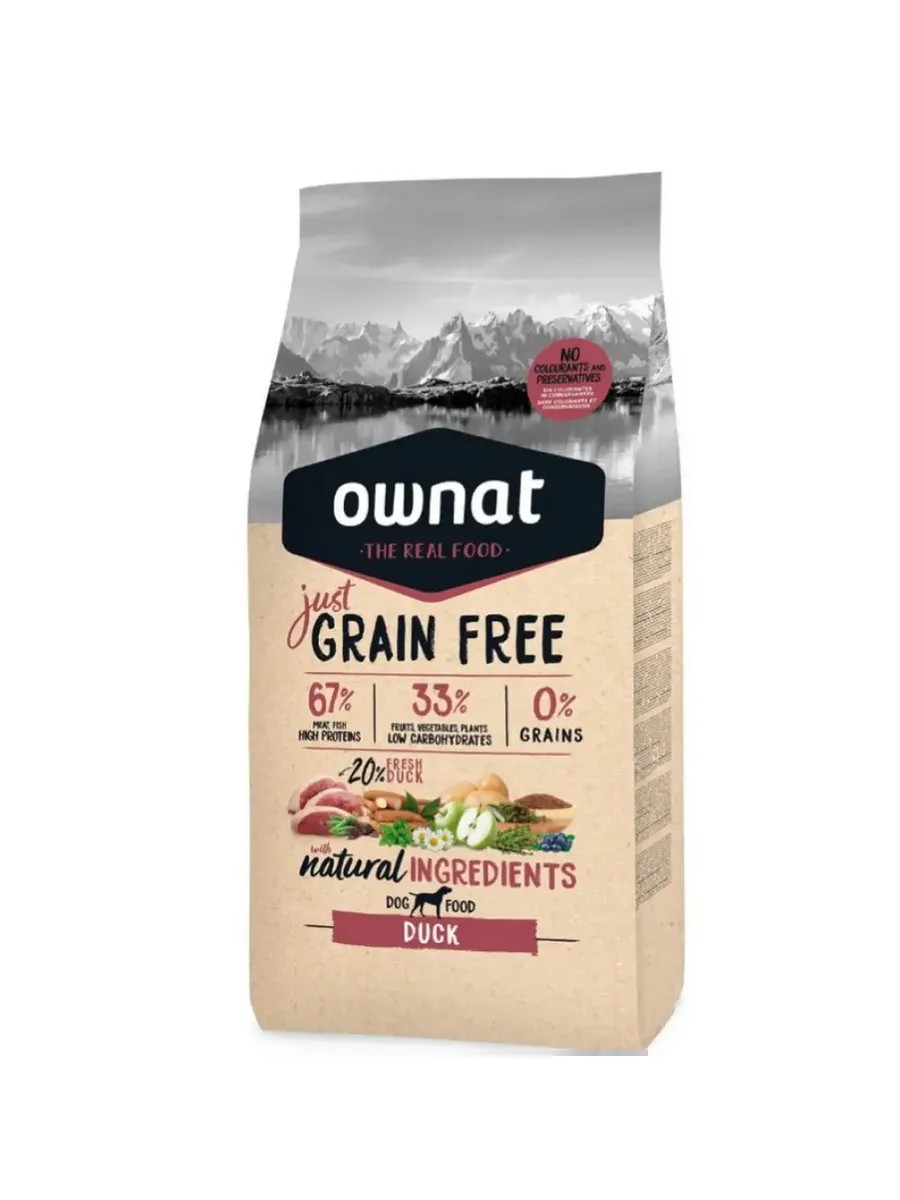 Ownat Just Grain Free. Duck – это сбалансированное питание для взрослых собак всех пород, произведённое в Испании.
