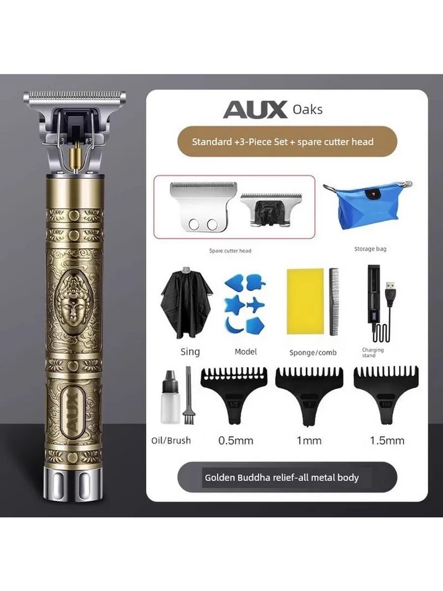 Электрическая машинка для стрижки Ox X3 (золотой Будда, набор 3, с запасной насадкой)