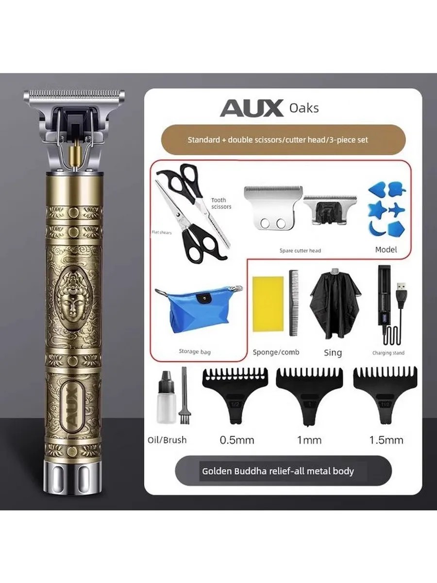 Электрическая машинка для стрижки Ox X3 (золотой Будда, набор 5, с насадкой, двойной стрижкой и сумкой)