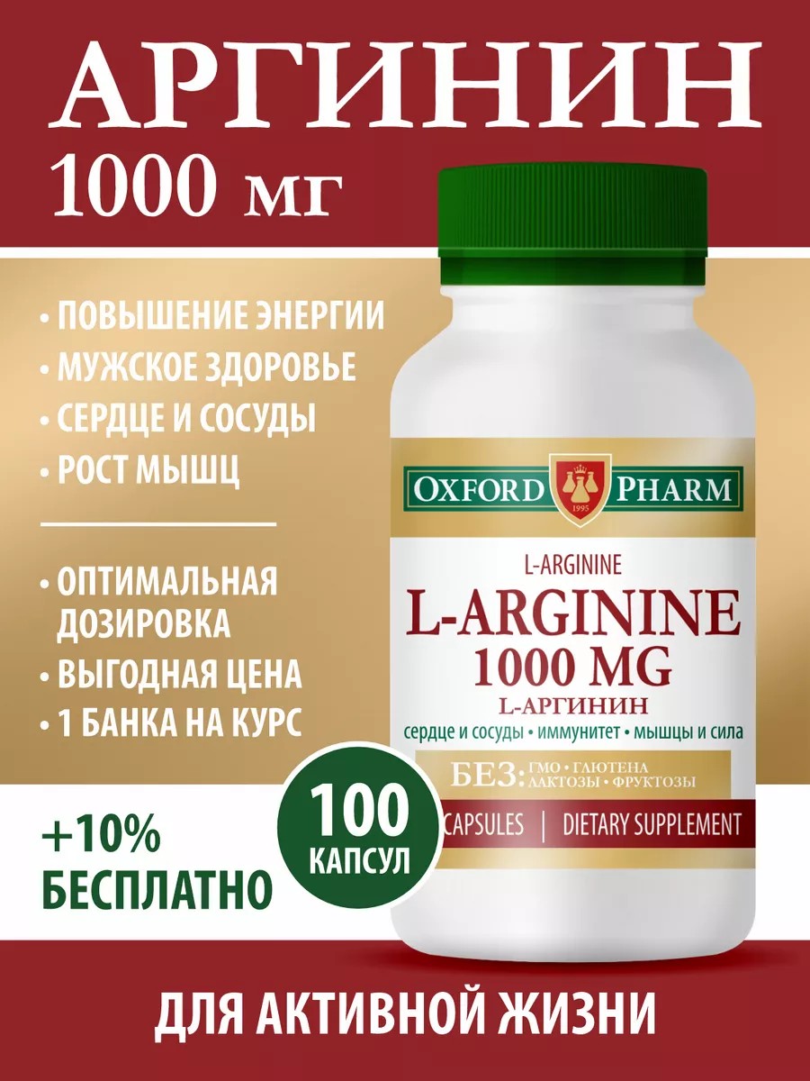 Аргинин - это условно-незаменимая аминокислота, являющаяся источником оксида азота в организме, регулирующего широту просвета кровеносных сосудов. Наибольшую пользу человеку приносит аргинин в свободной L-форме: способствует расширению сосудов, тем самым улучшая приток крови к мышцам и основным органам (сердце, головной мозг, печень), а также нормализует периферический кровоток, стимулирует производство гормона роста. L-Arginine участвует в формировании мышечной ткани и улучшает питание мышц, что повышает эффективность тренировок и увеличивает выносливость при физических нагрузках, а также обеспечивает более быстрое восстановление и снижение нагрузки на сердечную мышцу. Это особенно важно для достижения весомых результатов в спорте и контроле веса при сжигании жира и наборе мышечной массы. L-аргинин способствует улучшению притока крови кполовым органам, что способствует повышению потенции и репродуктивной функции у мужчин, улучшает качество сперматозоидов. Витаминный комплекс с аргинином способствует повышению сексуального влечения (либидо) и у мужчин, и у женщин. С возрастом выработка аргинина в организме значительно снижается, с чем связывают повышение артериального давления и снижение мышечной массы. Поэтому прием препарата L-аргинин 1000 мг необходим для мужчин, женщин, пожилых людей в возрасте, чтобы избежать таких заболеваний, как: депрессия, нервные расстройства; сердечнососудистые заболевания; атеросклероз; гипертония; слабый иммунитет; заболевания печени; проблемы репродуктивной сферы у мужчин и женщин; диабет; ожирение; артрит; артроз; медленный обмен веществ. Среди фото размещена подробная Инструкция по применению, с которой мы настоятельно рекомендуем ознакомиться перед решением о выборе комплекса с L-Аргинин, поскольку в производстве своей продукции мы используем только биологически активную свободную форму (изомер) l-аргинина. Такой Аргинин капсулы / таблетки от Oxford Pharm быстрее усваивается и действует на клеточном уровне без побочных эффектов. Рекомендованный прием- по 1 капсуле 3 раза в день во время еды. Мы всегда настоятельно рекомендуем проконсультироваться с врачом по поводу приема добавки в период беременности и лактации. Только врач может решать, какие средства и в каких дозировках необходимы этим категориям.