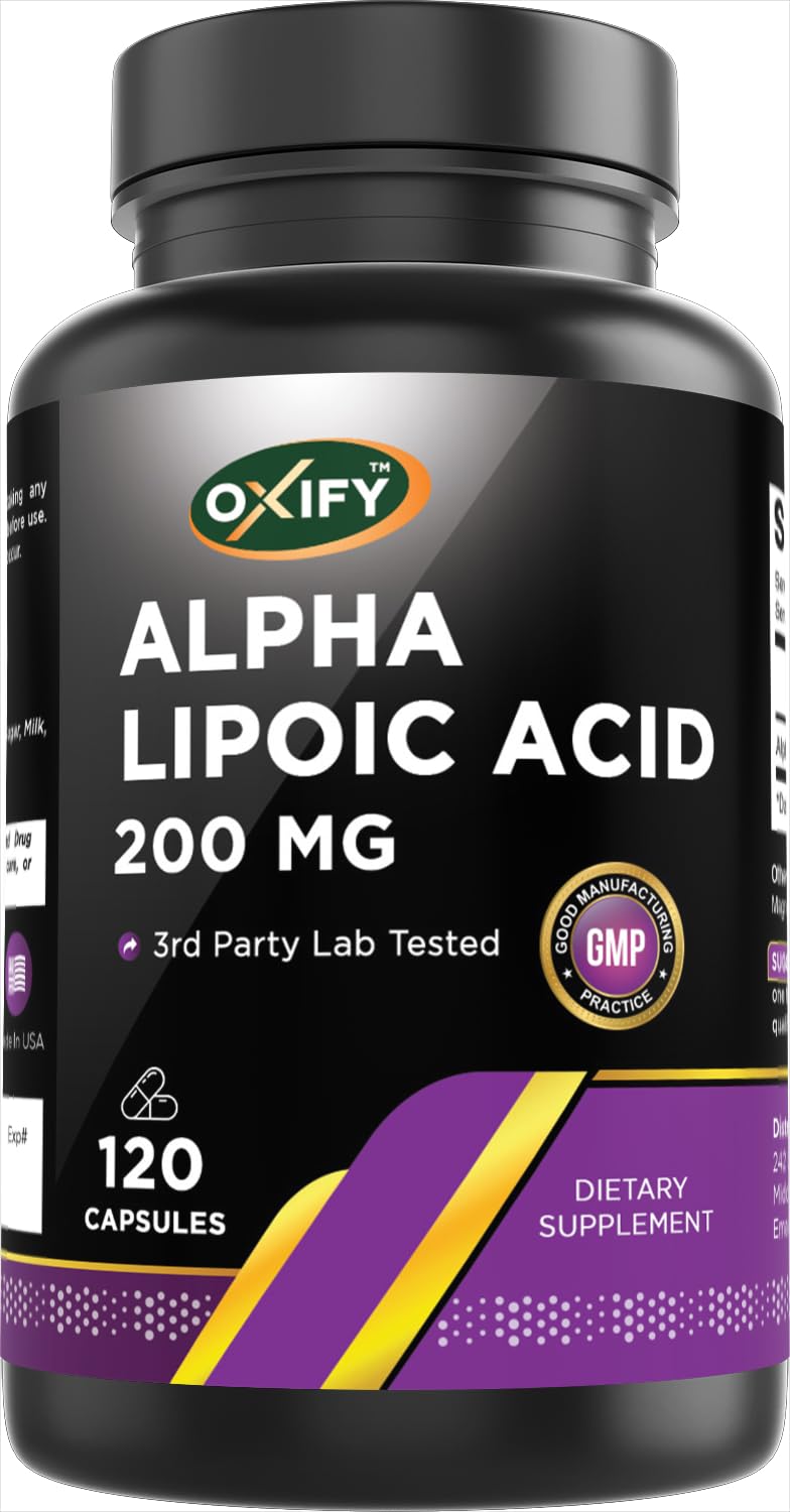 Oxify Alpha Lipoic Acid 200 mg | 120 Capsules | Gluten-Free Non-GMO | Supplement Made in USA
