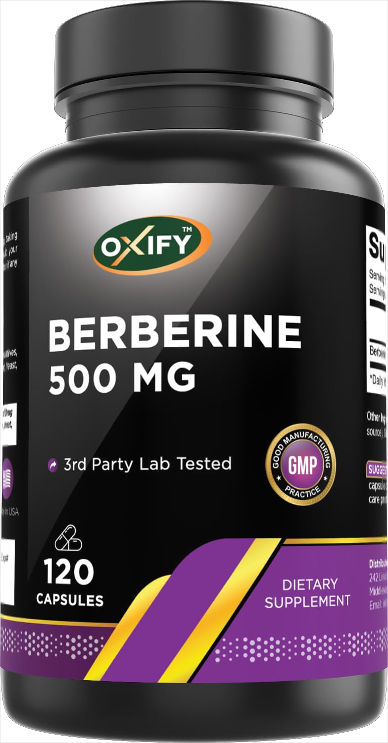 Oxify Berberine 500 mg | 120 Capsules | Gluten-Free Non-GMO | Supplement Made in USA