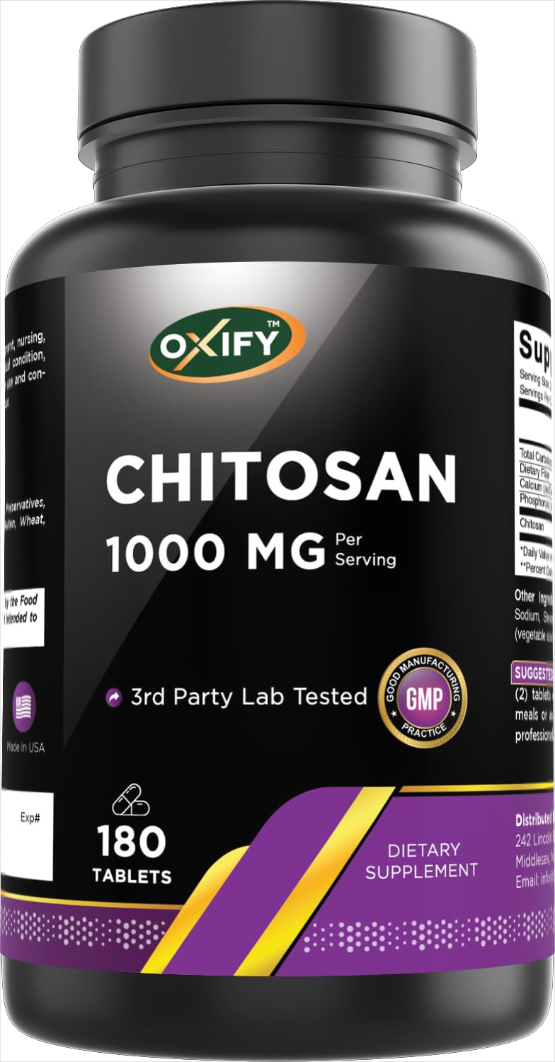 Oxify Chitosan 1000 mg | 180 Tablets | Gluten-Free Non-GMO | Supplement Made in USA