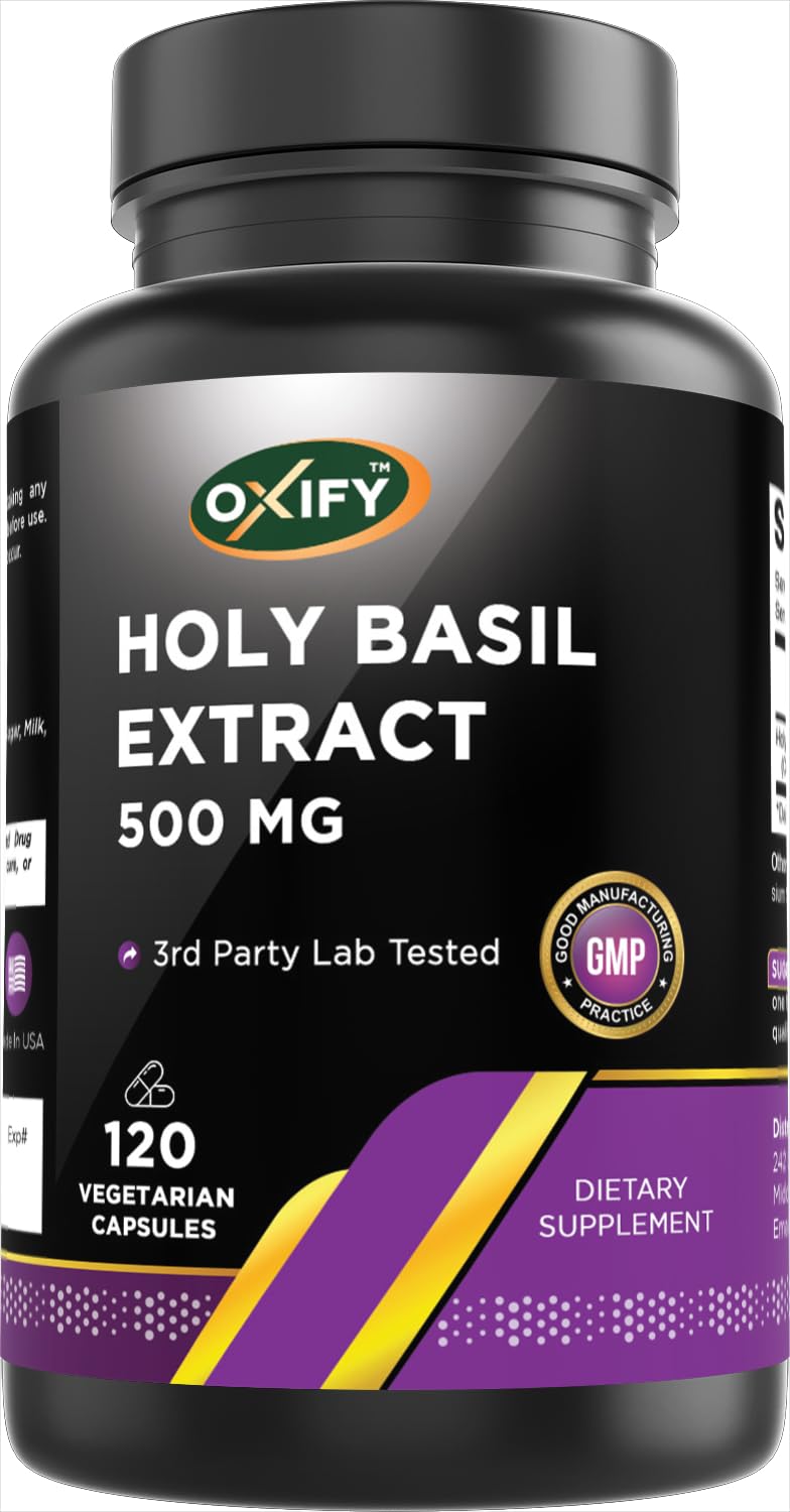 Oxify Holy Basil Extract 500 mg | 120 Vegetarian Capsules | Gluten-Free Non-GMO | Supplement Made in USA