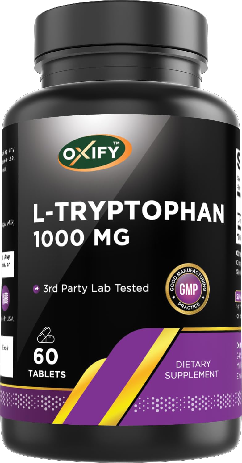 Oxify L-Tryptophan 1000 mg | 60 Tablets | Gluten-Free Non-GMO | Supplement Made in USA