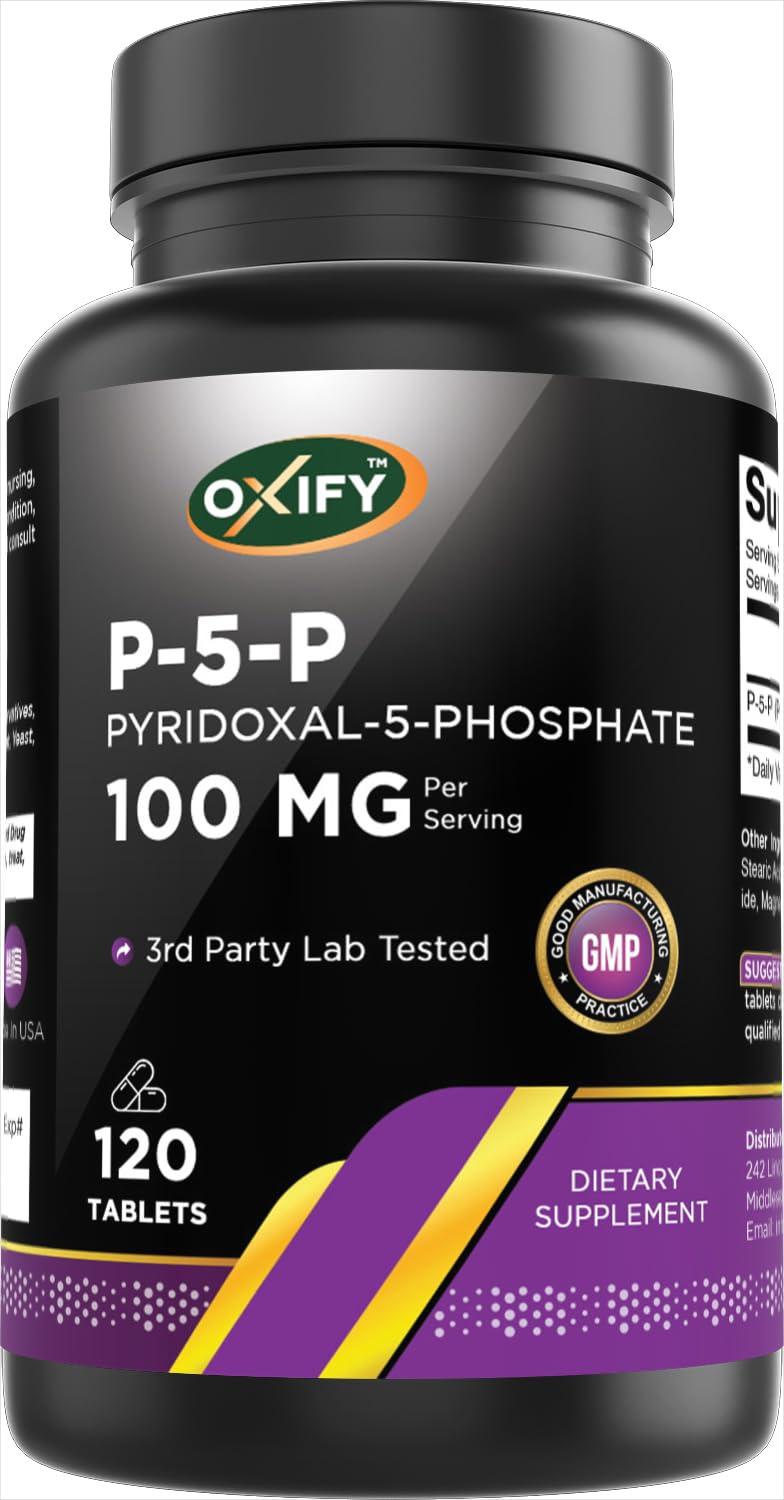 Oxify P-5-P Pyridoxal-5-Phosphate 100 mg | 120 Tablets | Gluten-Free Non-GMO | Supplement Made in USA