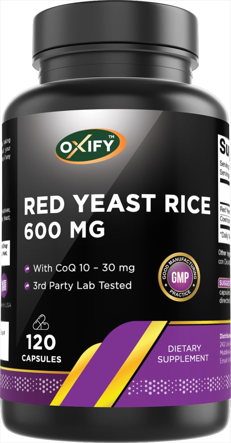 Oxify Red Yeast Rice with CoQ10 | 120 Capsules | Gluten-Free Non-GMO | Supplement Made in USA (1200 mg per 2 Capsules)
