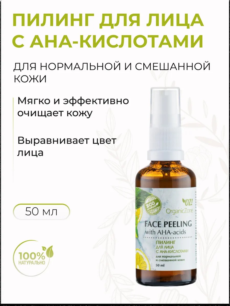 Пилинг для лица с aha-кислотами для нормальной и смешанной кожи, 50 мл