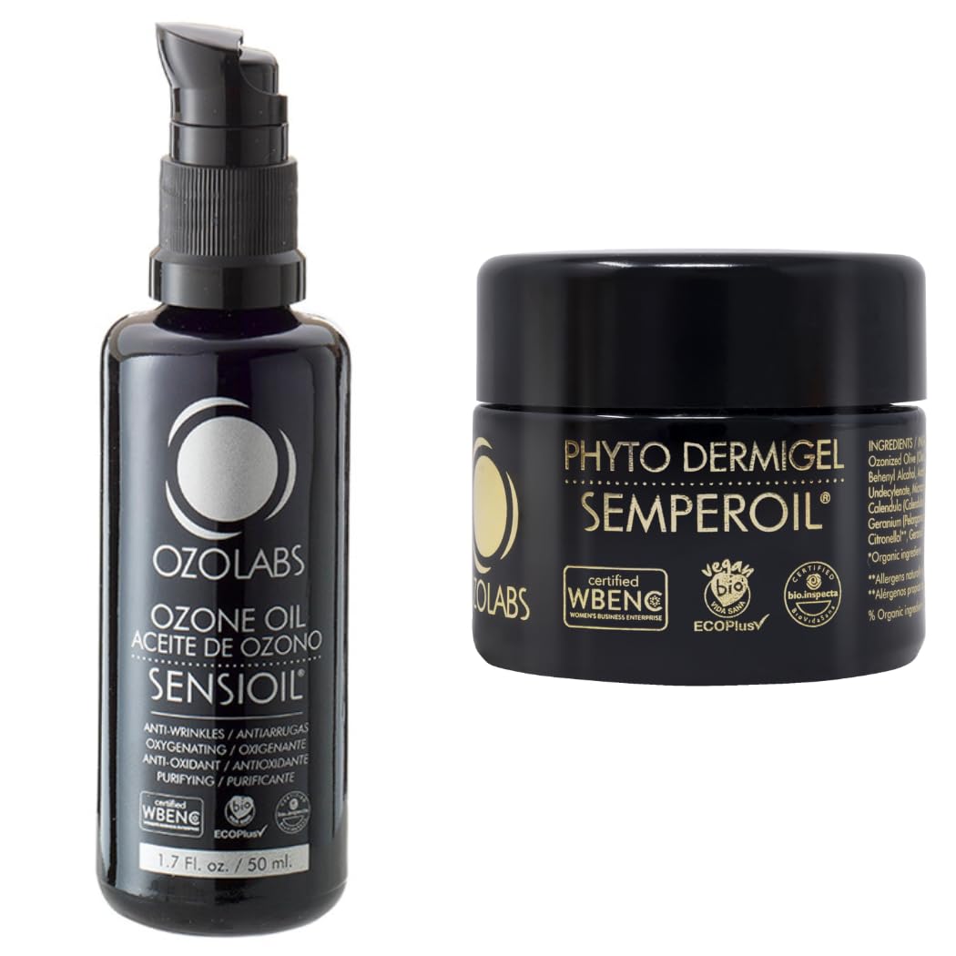OZOLABS | Product Bundle: Ozone Oil and Phyto Dermigel Day and Night Cream Set | Anti-Aging and Regenerating Skincare Duo | With the benefits of Organic Ozonated Oil | ISO 9001 |50 ml & 30 ml
