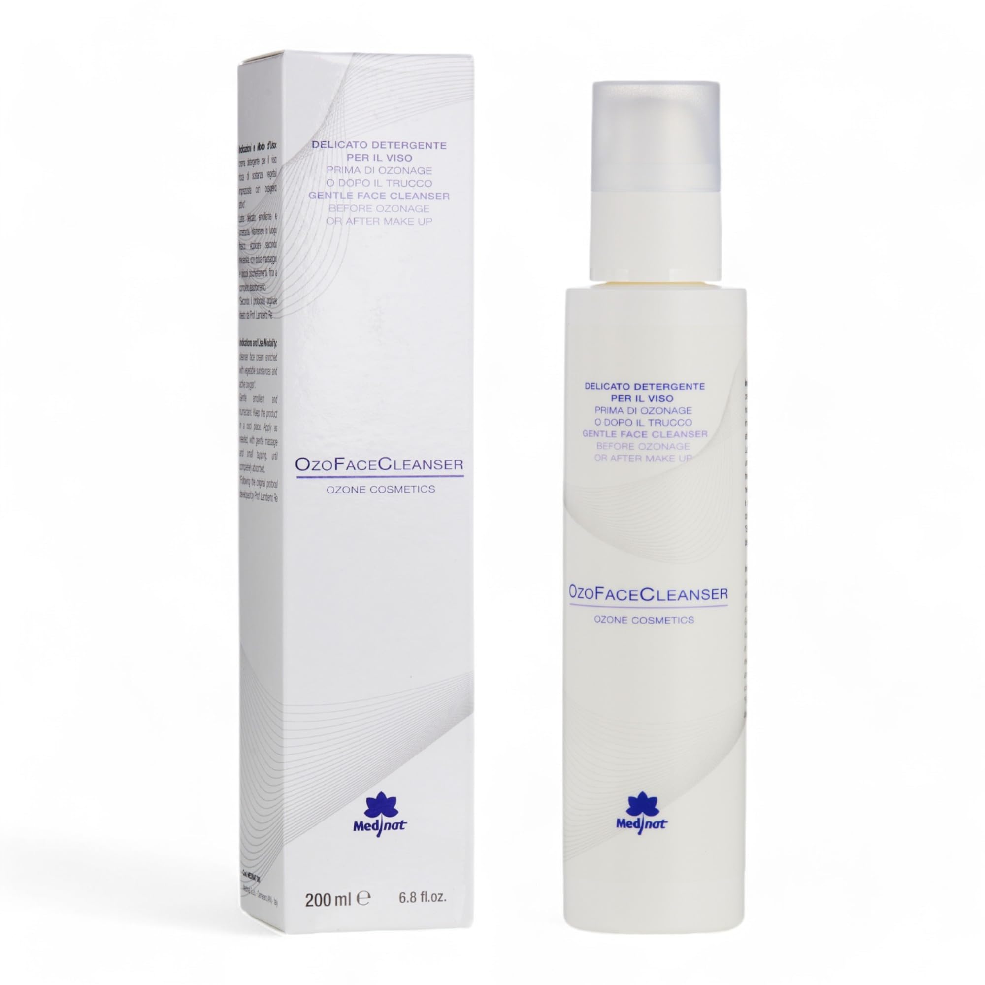 OzoFaceCleanser is a gentle, fragrant cleansing milk, ideal for removing makeup and revitalizing facial skin. Its formula, enriched with ozone and plant extracts, makes it unique and gentle on the skin. Use it daily for a deep yet gentle cleanse, leaving your skin feeling fresh and radiant. Its creamy texture spreads easily and rinses off without leaving any residue. With a 200ml capacity, this cleansing milk will last a long time for a daily beauty routine. Try OzoFaceCleanser and enjoy clean, glowing skin. SAFETY WARNING No interactions or incompatibilities have been proven. Cleanse the entire face, avoiding direct contact with the eyes. In case of contact with eyes, simply rinse with fresh water.Convenient size: Available in a 200ml size, this cleansing milk is easy to dispense and use during your beauty routine. Multi-purpose: Suitable for daily use, OzoFaceCleanser can be used on any occasion to keep skin clean and radiant. Pleasant fragrance: Enjoy a gentle fragrance while using this cleansing milk for a relaxing cleansing experience. Enriched formula: Enriched with ozone and plant extracts, this unique product offers effective yet gentle cleansing. Gentle cleanser: OzoFaceCleanser is an ideal cleansing milk to gently remove makeup and impurities from the face, leaving it feeling fresh and revitalized.OzoFaceCleanser Lait Détergent Doux à l'ozone, Extraits Légumes et Parfum Doux, 200 mlDESCRIPTION DU PRODUIT DESCRIPTION DU PRODUIT OzoFaceCleanser est un lait nettoyant doux et parfumé, idéal pour enlever le maquillage et revitaliser la peau du visage. Sa formulation enrichie en ozone et en extraits végétaux le rend unique et doux pour la peau. Utilisez-le tous les jours pour un nettoyage profond mais doux, laissant votre peau fraîche et lumineuse. Sa texture crémeuse s'étend facilement et se rince sans laisser de résidus. Avec une capacité de 200 ml, ce lait nettoyant durera longtemps pour une routine de beauté quotidienne. Essayez OzoFaceCleanser et profitez d'une peau propre et éclatante. AVERTISSEMENT DE SÉCURITÉ Aucune interaction ou incompatibilité n'a été prouvée. Nettoyez toute la surface du visage en évitant tout contact direct avec les yeux. En cas de contact avec les yeux, il suffit de rincer à l'eau douce.Format pratique : disponible en format de 200 ml, ce lait nettoyant est facile à doser et à utiliser pendant la routine de beauté. Multi-usages : convient pour un usage quotidien, OzoFaceCleanser peut être utilisé en toute occasion pour garder la peau propre et lumineuse. Parfum agréable : profitez d'une douce fragrance lors de l'utilisation de ce lait nettoyant, pour une expérience de nettoyage relaxante. Formulation enrichie : Enrichi en ozone et extraits végétaux, ce produit unique offre un nettoyage efficace mais en même temps doux pour la peau. Nettoyant doux : OzoFaceCleanser est un lait nettoyant idéal pour enlever délicatement le maquillage et les impuretés du visage, le laissant frais et revitalisé.