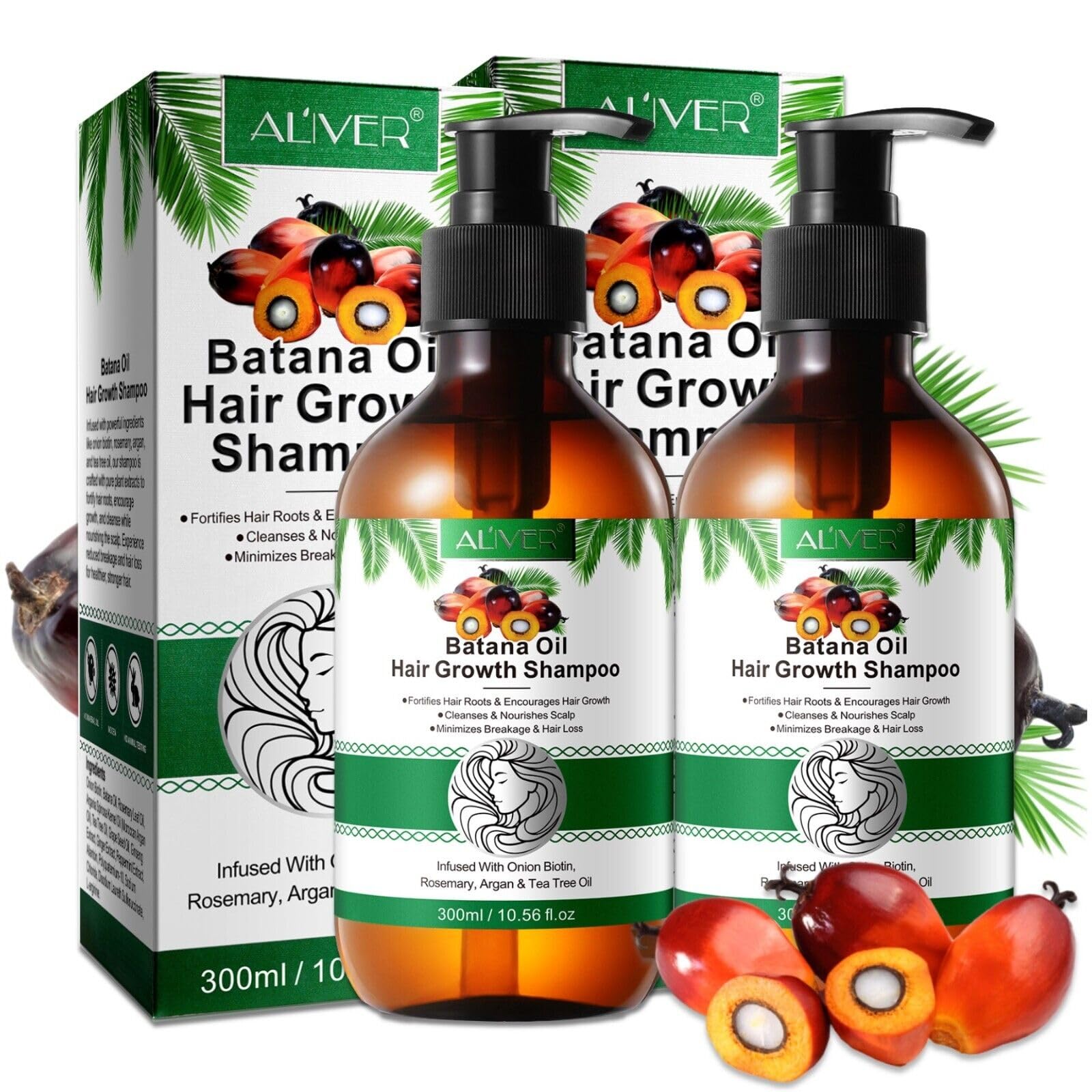 P-Beauty Batana Oil Rosemary Hair Growth Shampoo promotes hair growth, strengthens hair, and ensures a healthy scalp. It moisturizes, regenerates, and helps with hair loss and dryness. Its natural formula is suitable for all hair types, vegan, and sulfate-free. How to use: Apply a small amount of shampoo to wet hair, gently massage into the scalp, and leave in thoroughly. Rinse well. Use regularly for best results. SAFETY WARNING Keep out of reach of children. Not for consumption.Natural Ingredients: Free from sulfates, parabens, and harsh chemicals, this shampoo contains only natural ingredients such as batana oil and rosemary. It's vegan and safe for daily use, so you can give your hair and scalp the best care. Soothes the Scalp: Batana oil soothes the scalp, combats dryness and dandruff, and ensures a balanced scalp environment. It helps relieve irritation and leaves the scalp soft and supple, contributing to healthy hair growth. [Intensely Moisturizes and Nourishes] - This shampoo intensely moisturizes dry and damaged hair, restores natural shine, and improves manageability. Ideal for all hair types that need extra care to achieve a soft and shiny appearance. [Strengthens Hair] - The rich nutrients in batana oil strengthen hair from root to tip. It helps reduce breakage and split ends, improves hair structure, and ensures strong, healthy hair that is more resistant to external damage. It stimulates hair growth: batana oil and rosemary promote blood circulation in the scalp, stimulate dormant hair follicles, and encourage the growth of new hair. Ideal for those suffering from hair loss or thinning hair who are looking for a natural solution.P-Beauty - Shampooing à l'huile de croissance des cheveux au romarin, 2 x 300 ml – Soin anti-chute et soin du cuir chevelu – Hydratant et régénérant – Pour tous les types de cheveux, en cas de 2x300mlDESCRIPTION DU PRODUIT DESCRIPTION DU PRODUIT P-Beauty Batana Oil Shampooing Croissance des Cheveux au Romarin favorise la croissance des cheveux, renforce les cheveux et assure un cuir chevelu sain. Il hydrate, régénère et aide à la perte de cheveux et à la sécheresse. Sa formule naturelle convient à tous les types de cheveux, végétalien et sans sulfate. Comment utiliser: Appliquez une petite quantité de shampooing sur cheveux humides, massez doucement le cuir chevelu et laissez agir bien. Rincez abondamment. Utilisez régulièrement pour de meilleurs résultats. AVERTISSEMENT DE SÉCURITÉ Tenir hors de portée des enfants. Ne convient pas à la consommation.Ingrédients naturels : sans sulfates, parabènes et produits chimiques agressifs, ce shampooing ne contient que des ingrédients naturels tels que l'huile de batana et le romarin. Elle est végétalienne et sans danger pour une utilisation quotidienne, de sorte que vous pouvez offrir les meilleurs soins à vos cheveux et à votre cuir chevelu. Adoucit le cuir chevelu : l'huile de Batana apaise le cuir chevelu, lutte contre la sécheresse et les pellicules et assure un climat équilibré du cuir chevelu. Il aide à soulager les irritations et rend le cuir chevelu doux et souple, ce qui contribue à une croissance saine des cheveux. [Hydrate et nourrit intensément ] - Le shampooing hydrate intensément les cheveux secs et abîmés, restaure la brillance naturelle et améliore la souplesse. Idéal pour tous les types de cheveux qui ont besoin de soins supplémentaires pour redonner un aspect doux et brillant. [Renforce les cheveux] - Les nutriments riches contenus dans l'huile de Batana renforcent les cheveux de la racine aux pointes. Il aide à réduire la casse et les pointes fourchues, améliore la structure des cheveux et assure des cheveux forts et sains, plus résistants aux sollicitations extérieures. Stimule la croissance des cheveux : l'huile de batana et le romarin favorisent la circulation sanguine dans le cuir chevelu, stimulent les follicules pileux dormants et favorisent la croissance de nouveaux cheveux. Idéal pour les personnes souffrant de perte de cheveux ou de cheveux clairsemés à la recherche d'une solution naturelle.