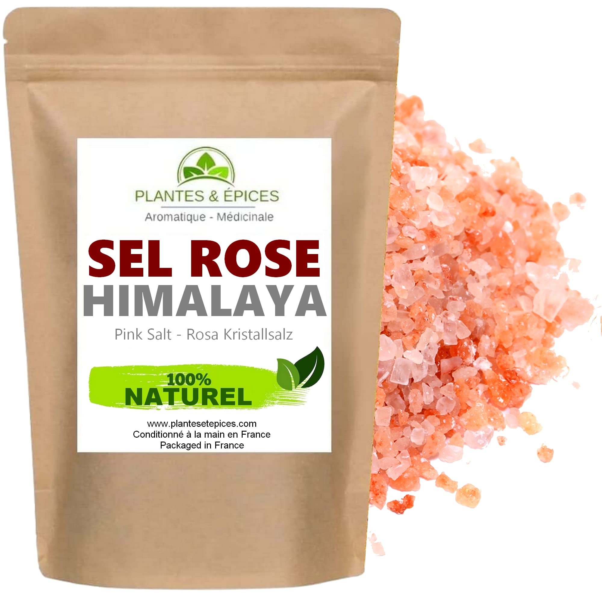 Plantes Epices - Sel Rose de l'Himalaya Pure 250g - Sachet Fraîcheur Biodégradable Refermable