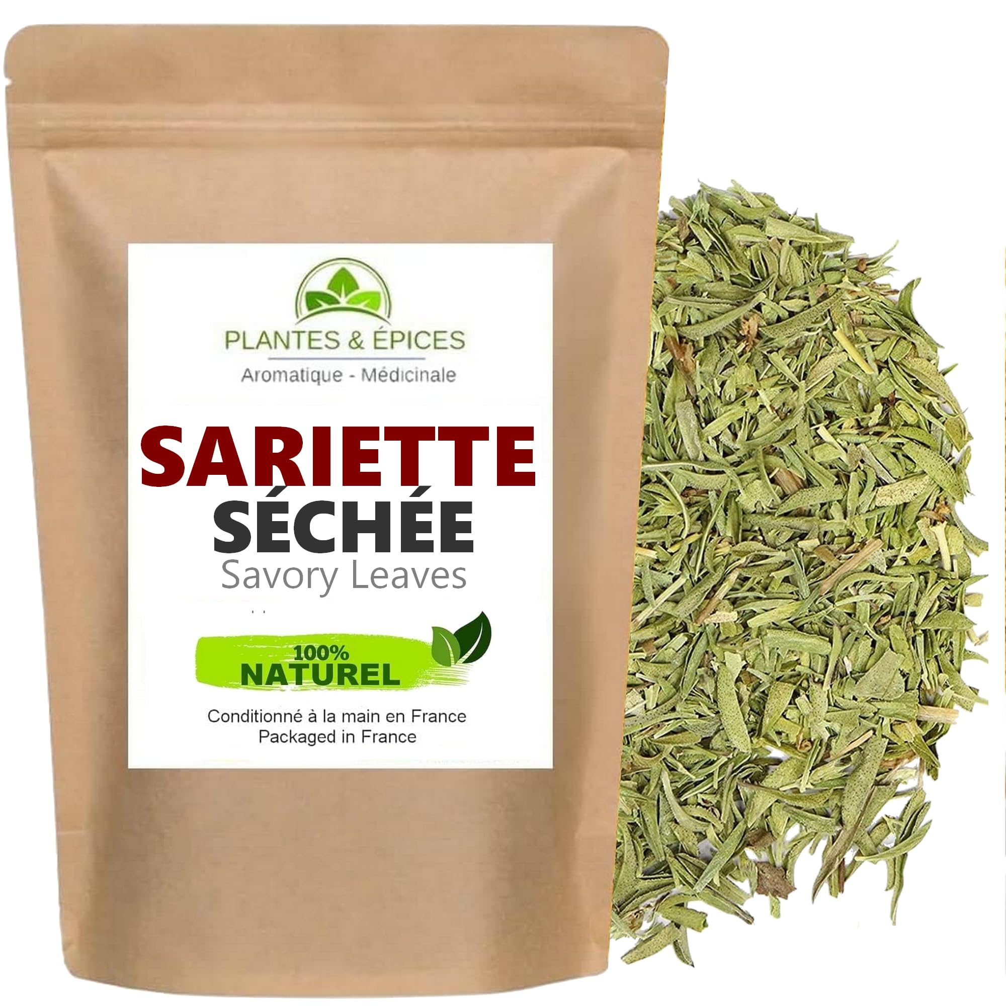 Plantes Epices - Sarriette Feuilles BIO 100 naturel, pour Tisane, Infusion, Cuisine gastronomique - Sachet Fraîcheur Biodégradable Refermable (100G)