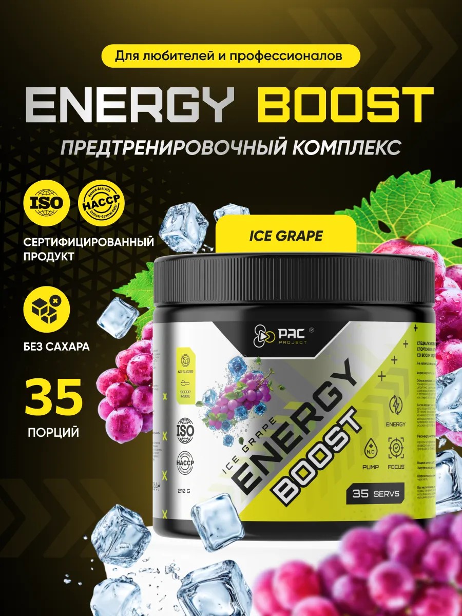 Предтренировочный Комплекс Pac Energy BOOST Ледяной Виноград