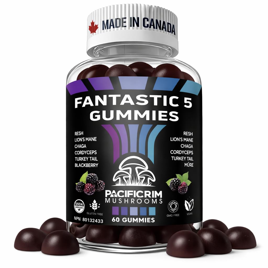 Pacific Rim Mushrooms Fantastic 5 Organic Mushroom Gummies 12 500 mg Lion s Mane Reishi Cordyceps Turkey Tail & Chaga Natural BlackBerry 60 Gummies
