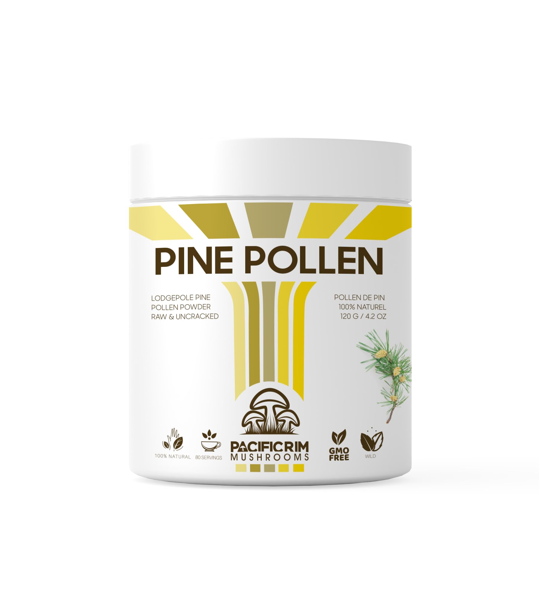 Pacific Rim Mushrooms Organic Pine Pollen Powder | High Potency 1500 mg per Serving | Non-Cracked Pine Pollen | Immune & Energy Enhancer | 120 Grams / 80 Serving