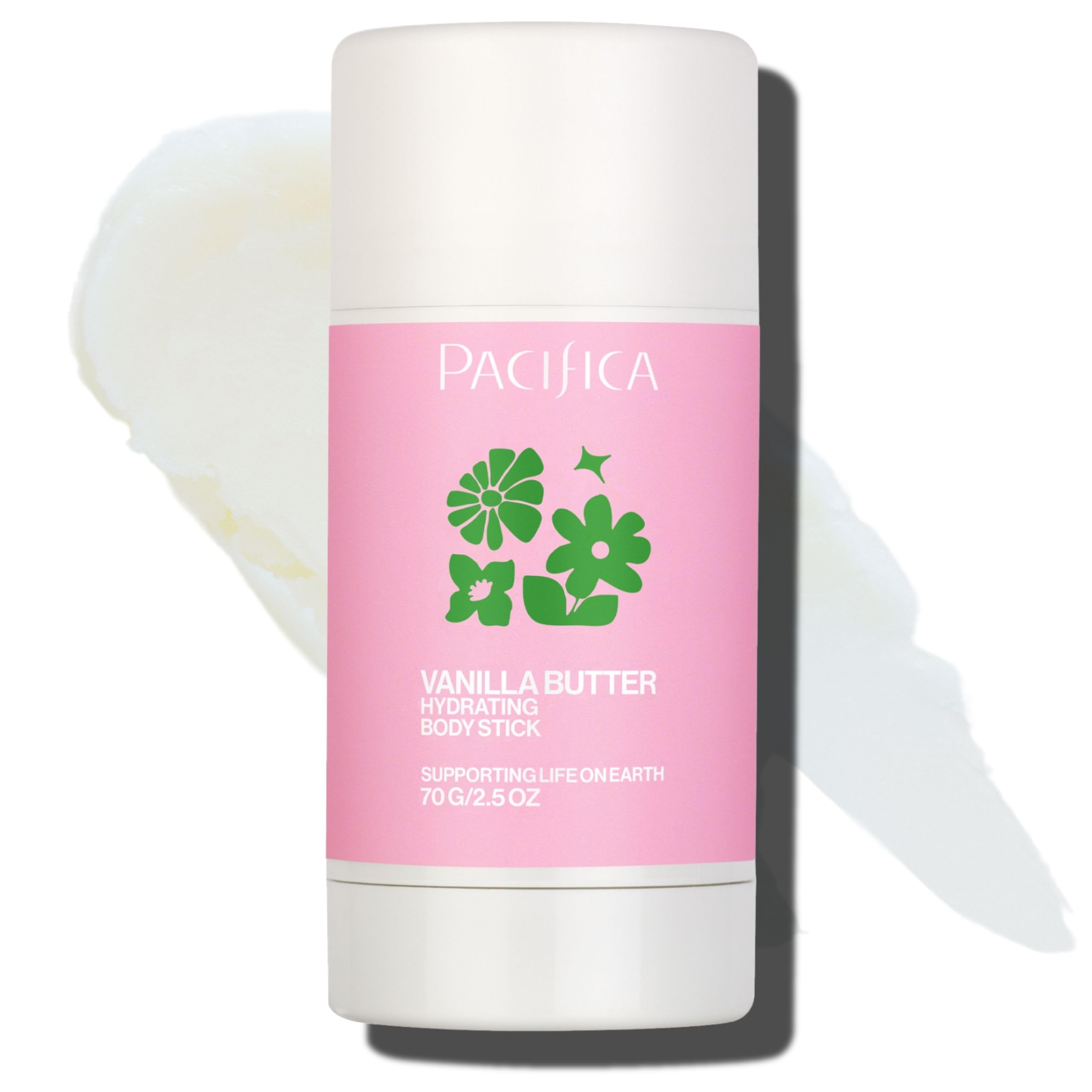 Mess-Free Hydration Wherever You Go: Experience instant relief from dry, rough skin with the Pacifica Vanilla Butter Hydrating Body Stick. This convenient solid lotion stick is the perfect on-the-go moisturizer, providing immediate, mess-free hydration without the hassle of traditional lotions. Its travel-friendly size fits easily into your purse, gym bag, or backpack, making hydration quick and effortless—anytime, anywhere. Rich, Luxurious Nourishment: Infused with rich shea butter and warm vanilla extract, this body balm deeply moisturizes, softens, and nourishes even the driest skin areas. Shea butter delivers powerful hydration, replenishing essential moisture and restoring skin elasticity. Combined with the comforting aroma of vanilla, this moisturizer not only cares for your skin but also enhances your daily self-care routine. Enjoy silky-smooth skin that feels pampered and hydrated from head to toe. Instant Skin-Softening Results: Formulated for quick absorption without greasy residue, this solid moisturizer easily glides onto skin, instantly melting to deliver deep hydration exactly where you need it most. Perfectly sized for travel or everyday convenience, it's ideal for quickly moisturizing elbows, knees, hands, feet, and other stubborn dry patches. With no messy creams or dripping lotions, your skin receives targeted care anytime, anywhere. Clean, Vegan, Cruelty-Free Beauty: Pacifica's commitment to clean beauty means this Vanilla Butter Hydrating Body Stick is formulated without harmful chemicals, including parabens, phthalates, sulfates, mineral oil, and synthetic fragrances. Proudly 100 vegan and cruelty-free, our body balm cares for your skin without compromising on ethics or quality. Suitable for all skin types—including sensitive skin—this gentle yet powerful moisturizer ensures your skin stays soft, hydrated, and healthy. Perfect for Daily Use Travel-Friendly: Incorporate the Vanilla Butter Hydrating Body Stick into your daily skincare regimen effortlessly. Apply directly to dry skin areas as needed throughout the day for a quick hydration boost. Its portable design makes it easy to carry in your purse, gym bag, backpack, or suitcase, ensuring your skin stays moisturized and comfortable during travel or busy days. Elevate your skincare routine with the easy, mess-free convenience of Pacifica's Vanilla Butter Hydrating Body Stick and enjoy beautifully soft, hydrated skin wherever life takes you.NON-GREASY QUICK-ABSORBING: Unlike traditional body lotions or creams, this body stick offers fast, mess-free application and quick absorption. The non-greasy balm texture glides smoothly onto skin, instantly melting for easy spreadability without leaving behind a sticky residue. Ideal for immediate hydration after showers, workouts, or whenever your skin needs a quick moisture boost. Enjoy soft, nourished skin with minimal effort. CLEAN BEAUTY FORMULA: Pacifica's Vanilla Butter Hydrating Body Stick is formulated to strict clean-beauty standards, 100 vegan, and cruelty-free. Free from parabens, phthalates, sulfates, mineral oil, and synthetic fragrances. Gentle and suitable for all skin types—including sensitive skin—this solid lotion balm provides effective hydration without harmful additives. Embrace healthy, beautiful skin with skincare you can trust and ingredients you'll love. RICH HYDRATION FROM SHEA VANILLA: Infused with natural shea butter and rich vanilla extract, this solid body moisturizer deeply nourishes your skin, enhancing elasticity and softness. Shea butter provides powerful moisture, while the warm vanilla scent uplifts and comforts. Perfect for daily use to lock in moisture, improve skin texture, and protect against dryness all day. Gentle yet effective, it leaves a delicate, comforting vanilla fragrance that lasts. CONVENIENT SOLID LOTION STICK – Say goodbye to messy lotions. This portable hydrating balm is perfectly packaged in an easy-to-use stick, offering mess-free moisturizing anytime, anywhere. Quickly swipe onto dry skin without getting your hands greasy. Compact enough for travel or daily use—throw it in your purse, gym bag, or travel kit for convenient, no-fuss hydration. The perfect on-the-go moisturizer for instant relief wherever you are. INSTANT RELIEF FOR DRY SKIN: Quickly soothe and hydrate dry, rough, or flaky skin with this solid moisturizing body balm stick. Infused with nourishing shea butter, rich vanilla, and plant-based oils, it instantly replenishes lost moisture to relieve dryness and discomfort. Ideal for elbows, knees, hands, and any dry spots that need instant hydration. Non-greasy, fast-absorbing, and easy to apply, leaving your skin feeling silky-soft, smooth, and comfortable.