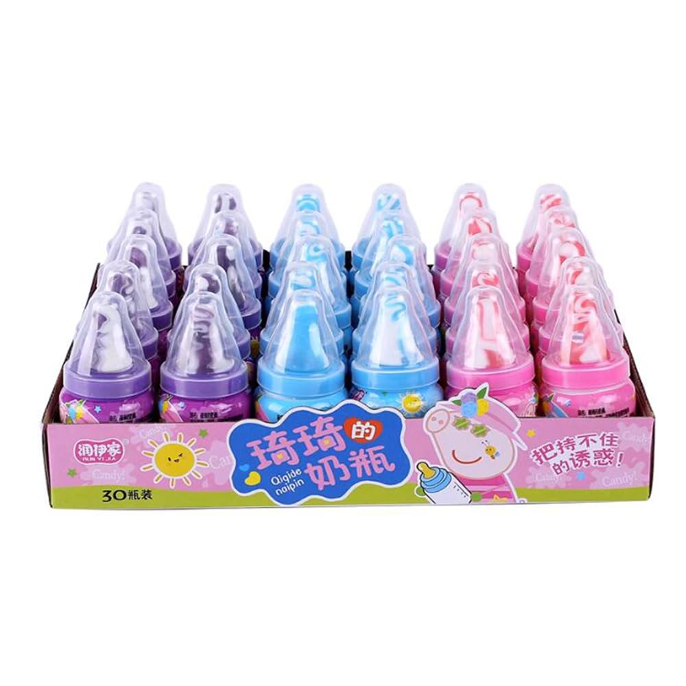 Ingredients: white sugar, maltose, fruit juice, etc. ??????????????????,?????????,?????????,???????????????????????,?????????. Bottle-shaped nipple candies are a type of candy with a unique shape. Its top is shaped like a pacifier, while its bottom is shaped like a bottle, presenting a very cute form. These candies are usually brightly colored and are loved by children. Product Features: Bottle-shaped, Tasty and Fun, reminiscent of childhood memories. Inside the bottle, there are jumping candies, dipping them in and eating them, it's an unexpectedly delicious experience.