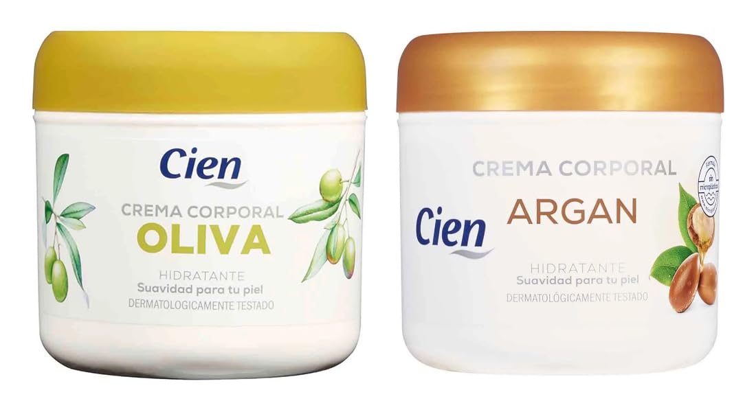 Pack 2 - Cien - Oliva Hydrating Body Cream 250 ml + Arg n Body Cream 250 ml. Suavidad para tu piel. Pack 2