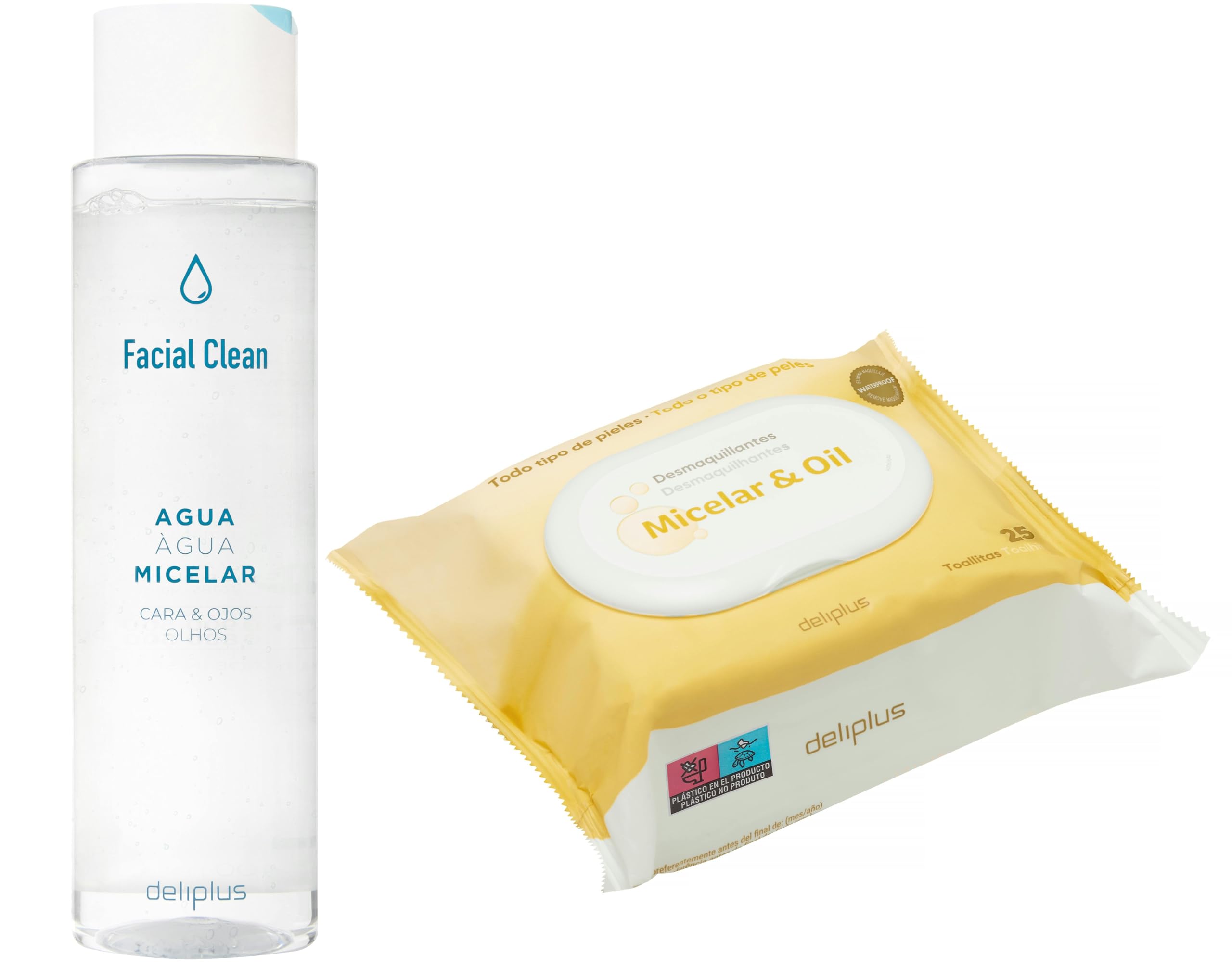 Pack d maquillant visage et yeux micellaires 1 flacon de 400 ml d'eau micellaire visage et yeux visage Clean + 25 unit s de lingettes d maquillantes micellaires et huile | Convient tous les types