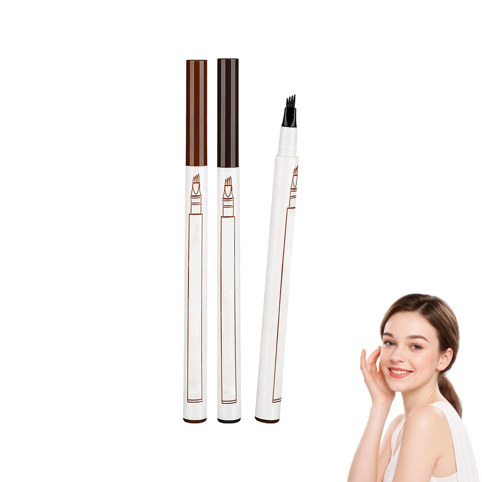 Pack de 2 Stylos à Sourcils 4 Pointes Résistant à l Eau, Couleurs Châtaigne et Brun, Micro Pointe Fourche pour Sourcils Naturels et Définis