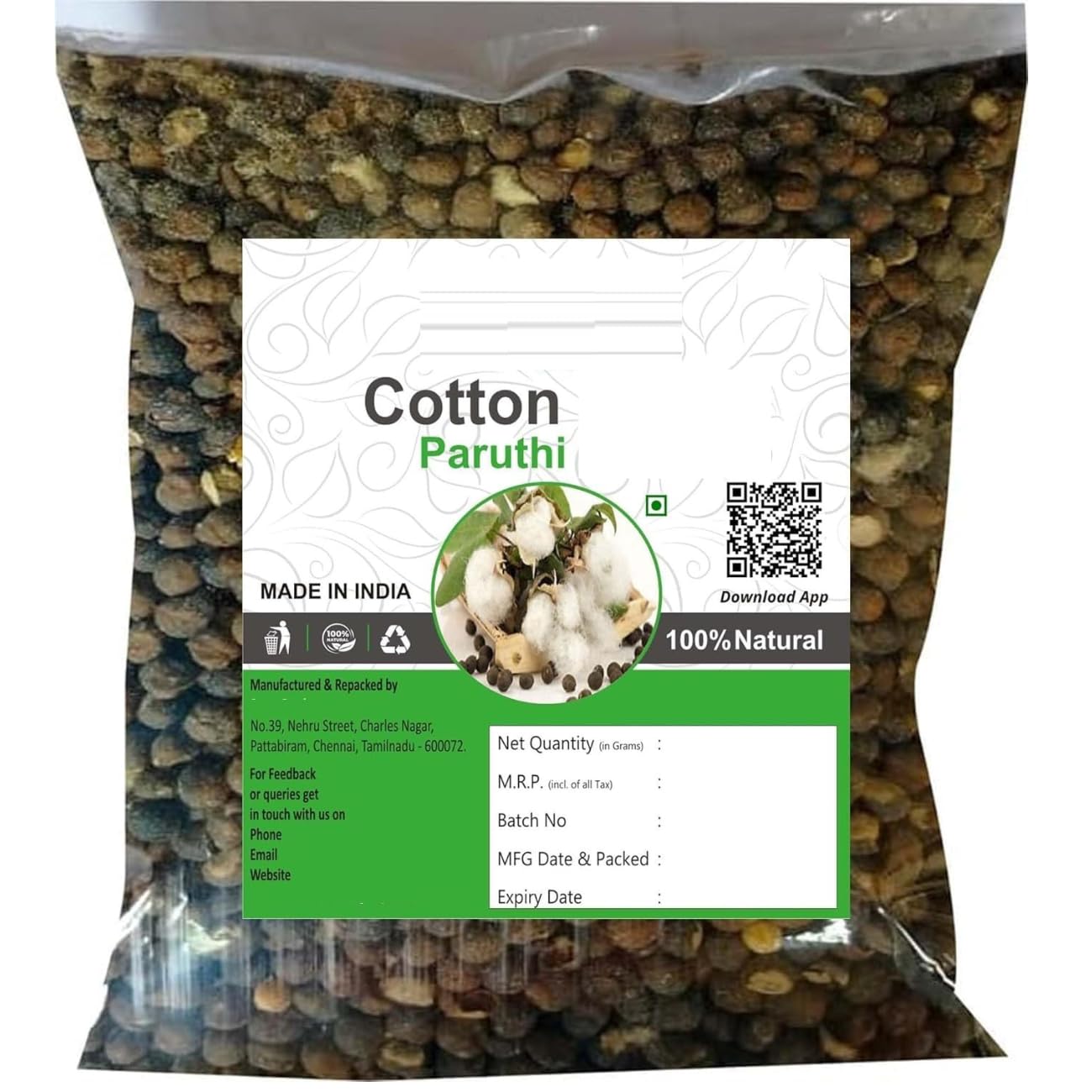 Pack of 1 Paruthi - 3.52Ounce / 100Gm - Cotton
