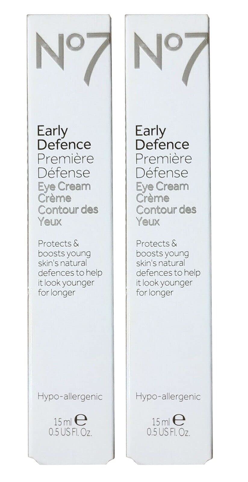 GTIN: 706177053138. Best Sellers Rank: See Top 100 in Beauty & Personal Care. Number of Items: 2. Unit Count: 1.00 Fl Oz. Active Ingredients: Carbomer,glycerin,glyceryl stearate,methylparaben,polyacrylamide,potassium sorbate,tocopherol,vitamin a See more. Item Form: Cream. Brand: Generic. : B0BRX8NT1S. Manufacturer: No7 Early Defence Eye Cream N07 Early Defence Eye Cream. UPC: 706177053138. Item model number: 5000167275063. Package Dimensions: 10 x 10 x 4 inches; 8 Ounces.