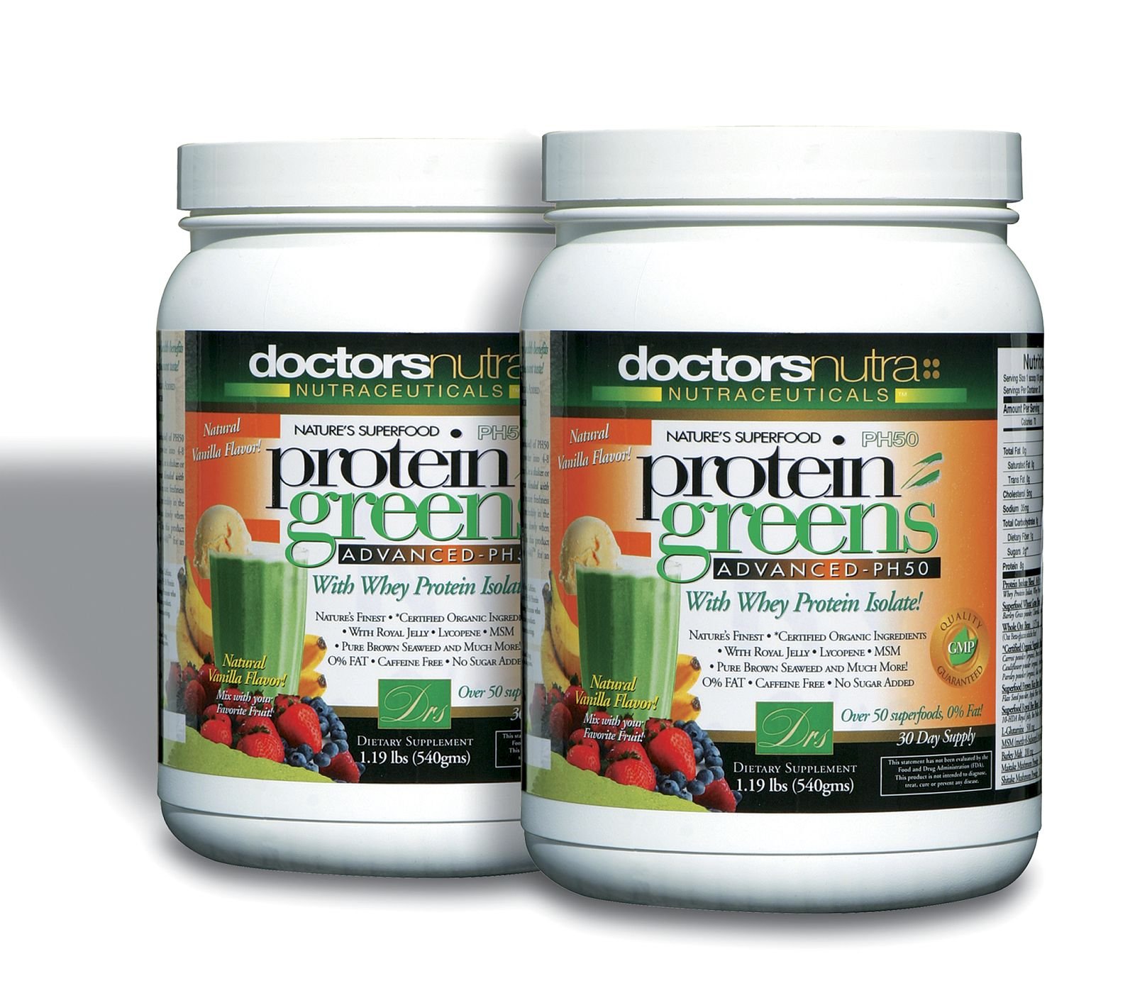 (Pack of 2) PH50 Protein Greens Drink with Certified Organic Ingredients by Doctors Nutra Nutraceuticals 1.19 Pounds (540 Grams) 50 Superfoods Digestive Enzymes Natural Vanilla Flavor