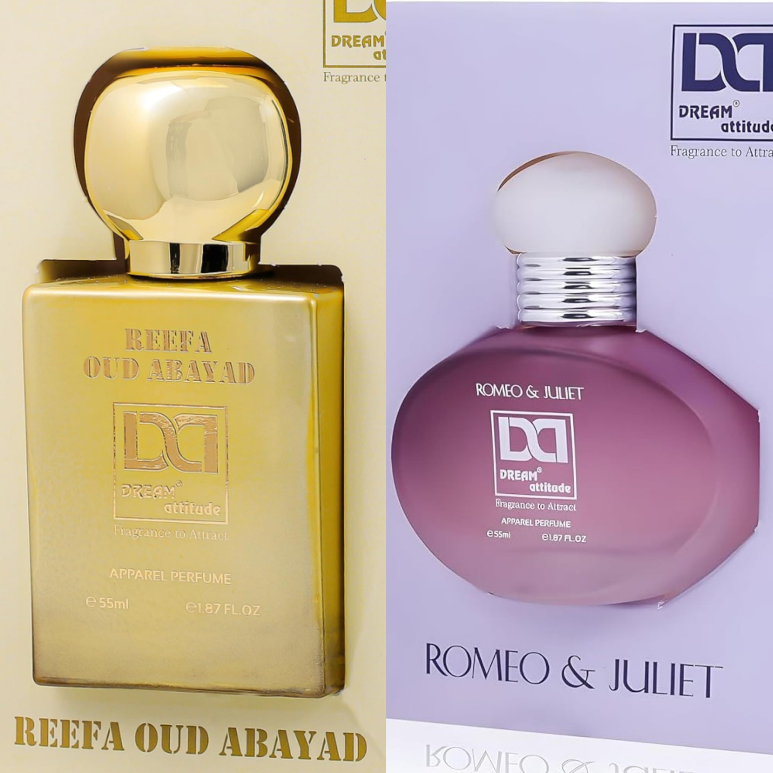 (Pack Of 2) Premium Oud Reefa Abayad Romeo&Juliet Men Women Non Alcoholic Long Lasting Timeless Fragrance For Enduring LOVE Oud Spicy Floral Scent 55-ML 1.86 Floz Vaporisateur Spray.