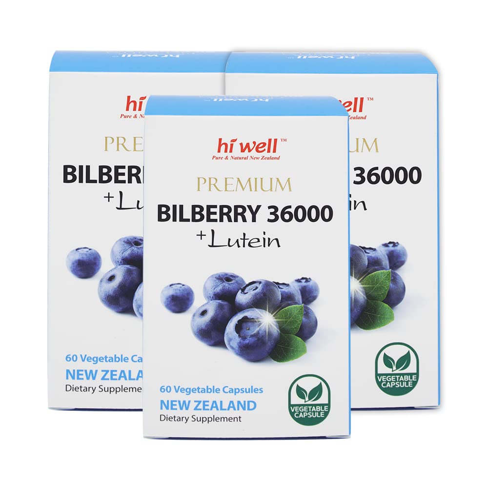 (Pack of 3) Hi Well Premium Bilberry 36000 + Lutein 60Vegtarian Capsules