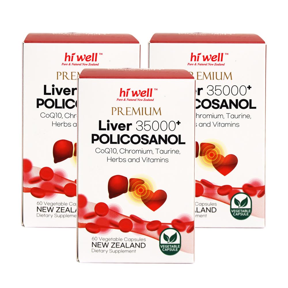 (Pack of 3) Hi Well Premium Liver 35000+ Policosanol 33.4mg 60Vegetarian Capsules