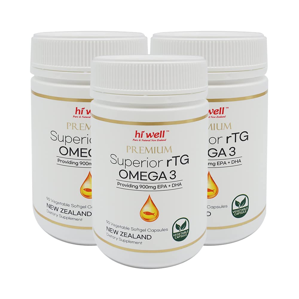 (Pack of 3) Hi Well Premium Superior rTG Omega 3 90Vegetable Softgel Capsules