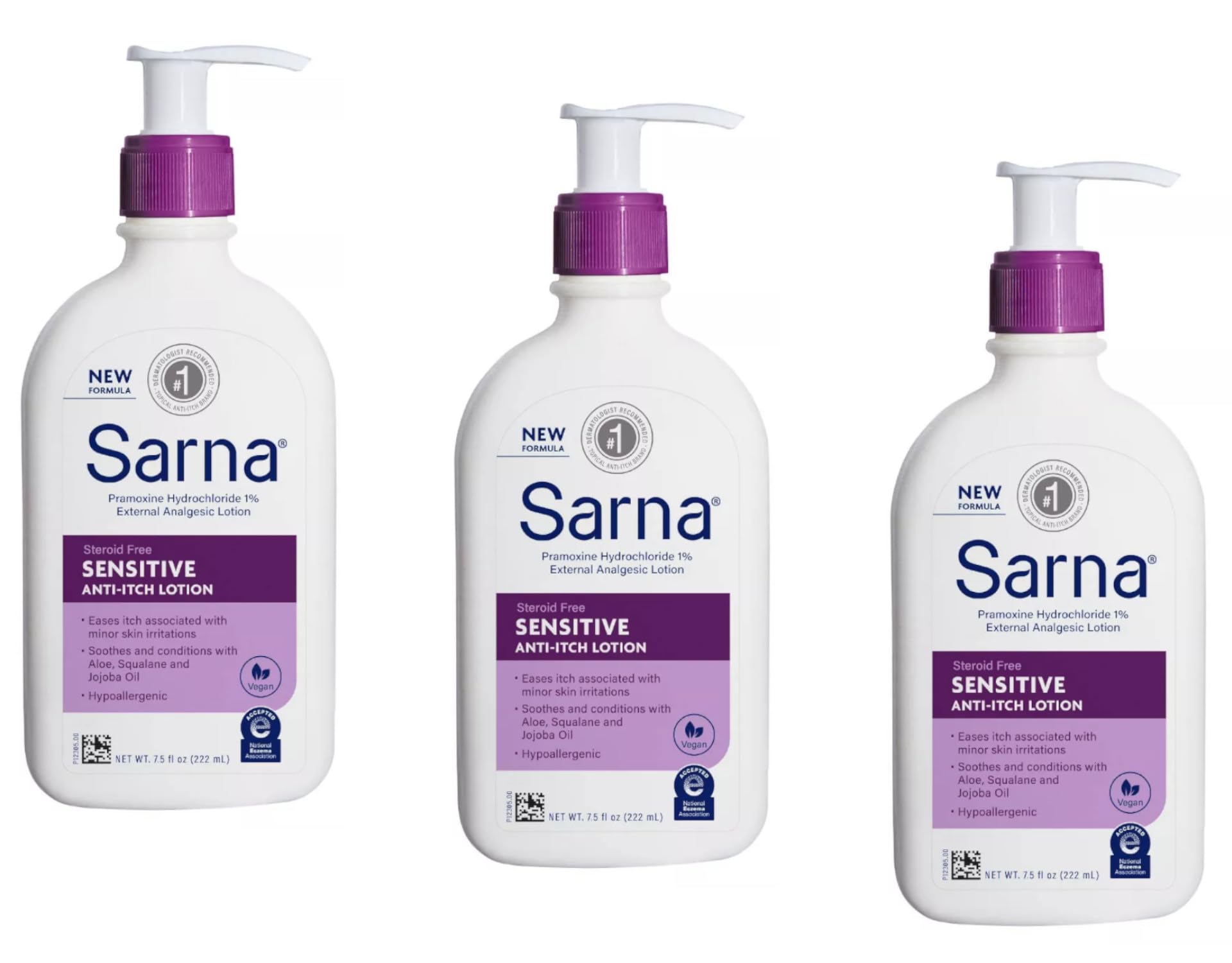 PACK OF 3 Sarna Sensitive Anti-Itch Lotion 7.5 Fl. Oz.