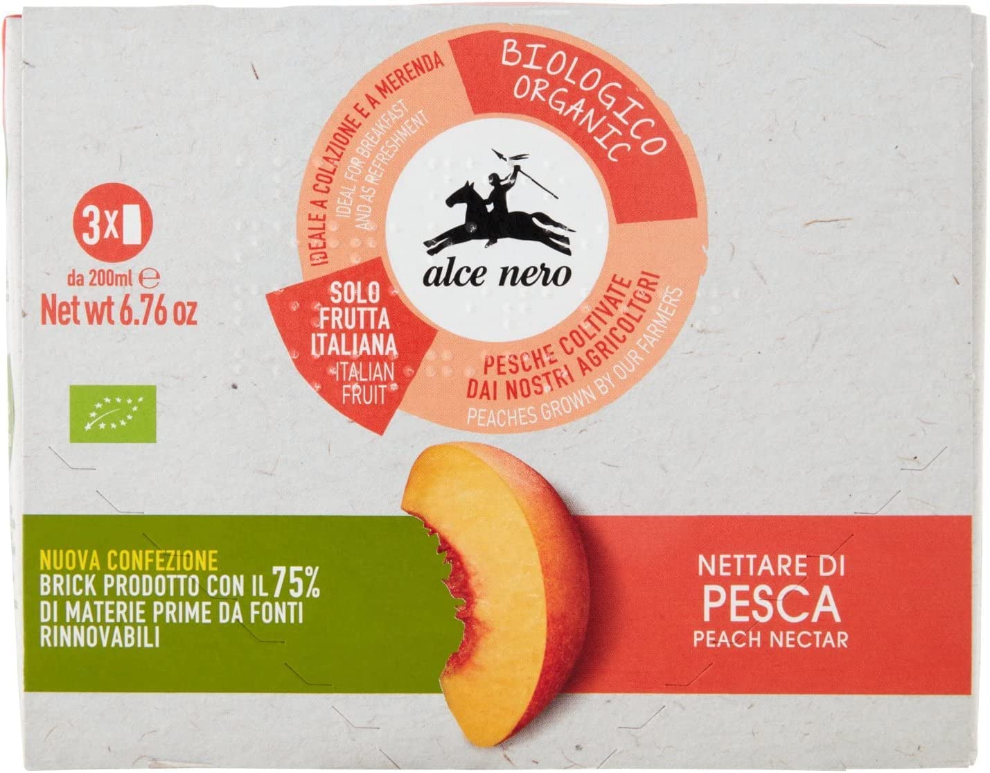 Pack of 6 organic peach nectar Alce Nero Nettare Biologico di Pesca 3 Brik of 200 ml
