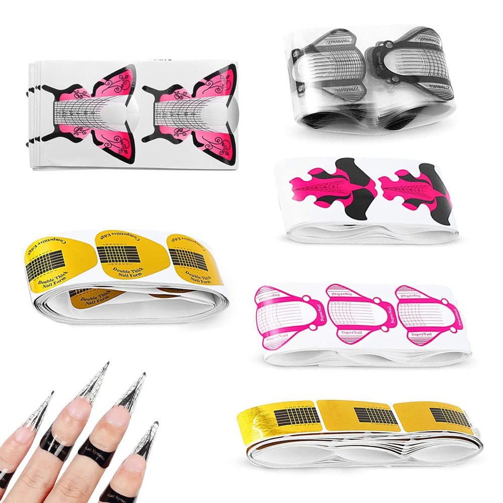 600PCs Nail Forms, 6 Styles UV Gel Nail Art Tips Extension Forms Manicure Design Paper Tray Accessory, Acrylic Nails Extension Nail Sticker Features: Perfect Fit: Each Different Size of the Butterfly-Shape Gel Nail Has the Characteristics of Light and Compact, Can Perfectly Fit Most Types of Fingers. Easy to use: When Using, Only to Tear Off The Sticker On The Nail Form Guide Diy Tools Without Apply Any Adhesive, Saves A Lot of Time, and Convenient to Use. Products details: Name: Nail Forms Material: paper Size: As the Pictures Shown Color: Gold, Pink, Gray (As The Pictures Shown) Package included: 600 Nail FormsWide application: These nail art guide shapes can be easily attached to your fingers, ensure a nice nail effect and are more flexible when choosing the nail shapes.Suitable for acrylic nails, nail extension, manicure salon or household goods, beautiful tools for nail artists or beginners.Easy to use: Our nail shape guide stickers are folded, easy to use.Simply take the corresponding amount according to your requirements.The nail extension peaks can wrap around their nail.Then apply it with polygel and harden them from the shape and length that you want.Self-adhesive: Our nail extension shape stickers consist of high-quality self-adhesive materials, are mild and safe for your fingers, have a good adhesive effect, can be well attached to your fingers and do not leave any residues when removed.Practical design: Each nail extension was provided with a length marker that offers you precise instructions for the production of exquisite and fine nails in order to avoid disorder or dirt and to continue your nail art smoothly and effortlessly.Package included: This package contains 600 self -adhesive nail extension forms in 6 different forms.This abundant amount can satisfy your wishes in the field of nail art crafting and you can also share them with your families.600pcs Nail Forms, 6 Styles UV Gel Nail Art Tips Extension Forms Manicure Design Paper Tray Accessory,Acrylic Nails Gel Nails Extension Nail Sticker Features: Perfect Fit:Each different size of the butterfly-shape gel nail has the characteristics of light and compact, can perfectly fit most types of fingers. Easy to Use:When using, only need to tear off the sticker on the nail form guide DIY tools without applying any adhesive, saves a lot of time, and convenient to use. Products details: Name: Nail Forms Material:Paper Size:As the pictures shown Color:Gold,Pink,Gray(as the pictures shown) Package includes: 600 Nail FormsBreite Anwendung: Diese Nail Art Guide-Formen lassen sich leicht an Ihren Fingern befestigen, sorgen für einen hübschen Nageleffekt und sind flexibler bei der Auswahl der Nagelformen. Geeignet für Acrylnägel, Nagelverlängerung, Maniküre-Salon oder Haushaltswaren, schöne Werkzeuge für Nagelkünstler oder Anfänger. Einfach zu Verwenden: Unsere Nagelform-Führungsaufkleber sind gefaltet, einfach zu verwenden. Nehmen Sie einfach die entsprechende Menge entsprechend Ihren Anforderungen. Die Nagelverlängerungsspitzen können sich um Ihren Nagel wickeln. Tragen Sie sie dann mit Polygel auf und härten Sie sie aus Form und Länge, die Sie wollen. Selbstklebend: Unsere Nagelverlängerungsform-Aufkleber bestehen aus hochwertigen selbstklebenden Materialien, sind mild und sicher für Ihre Finger, haben eine gute Klebewirkung, können gut an Ihren Fingern befestigt werden und hinterlassen beim Entfernen keine Rückstände. Praktisches Design: Jede Nagelverlängerungsform wurde mit einer Längenmarkierung versehen, die Ihnen eine präzise Anleitung für die Herstellung exquisiter und feiner Nägel bietet, um Unordnung oder Schmutz zu vermeiden und Ihre Nagelkunst reibungslos und mühelos fortzusetzen. Paket Enthalten: Dieses Paket enthält 600 Stück selbstklebende Nagelverlängerungsformen in 6 verschiedenen Formen. Diese reichliche Menge kann Ihre Wünsche im Bereich Nail Art Crafting befriedigen und Sie können sie auch mit Ihren Familien teilen.Pack of 600 Nail Stencils Nail Art Nail Shape Stencil Self Selbstklebende Nail Art Forms Aufkleber DIY Nagel Gel Nagelspitzen für künstliche Fingernagel Nagel Kunst Spitzt Verlängerungs Werkzeug