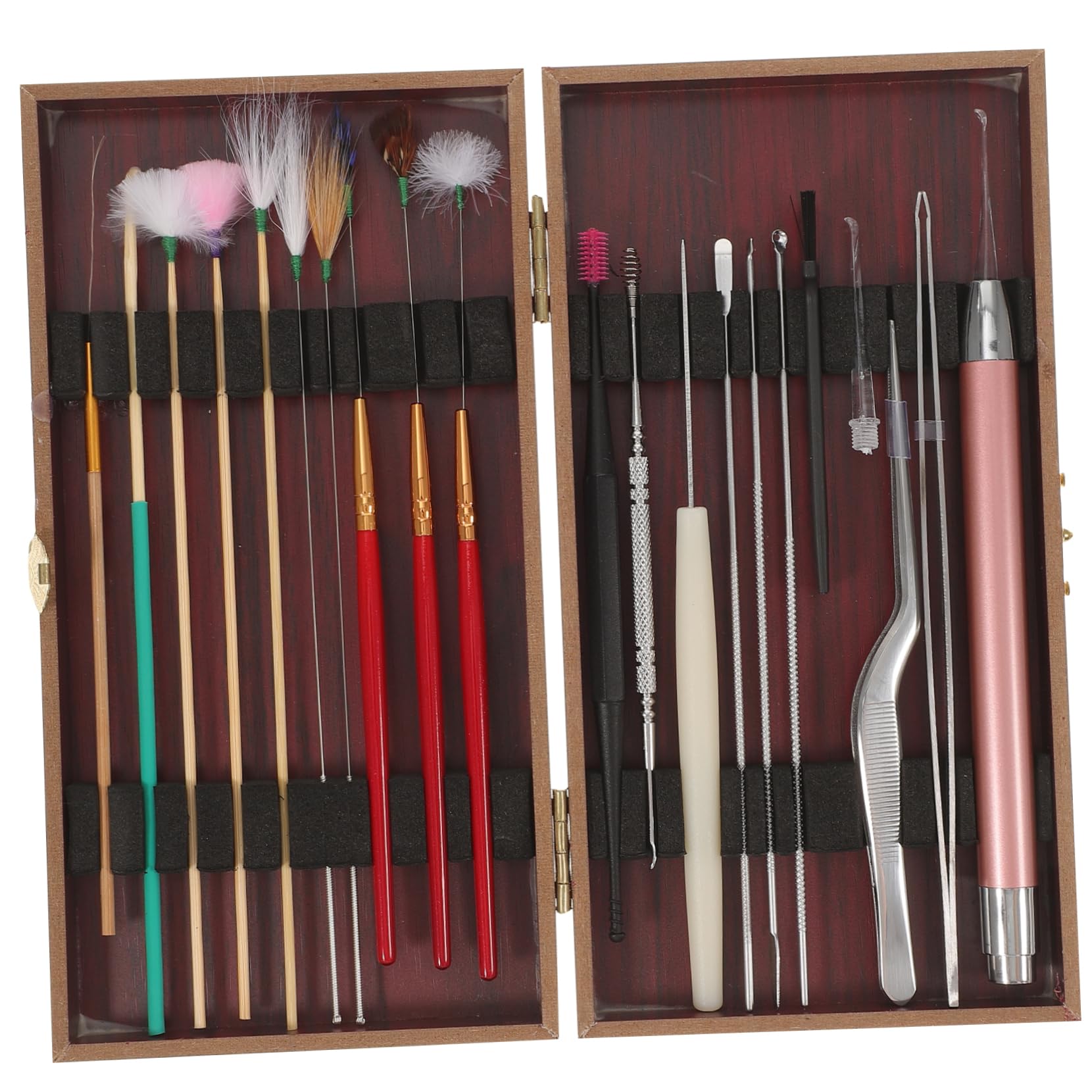 PACKOVE Earwax Cleaning Tools Kit with Wooden Box Durable Wood Abs Ear Cleaning Tools for Ear Hygiene Set Dark Red