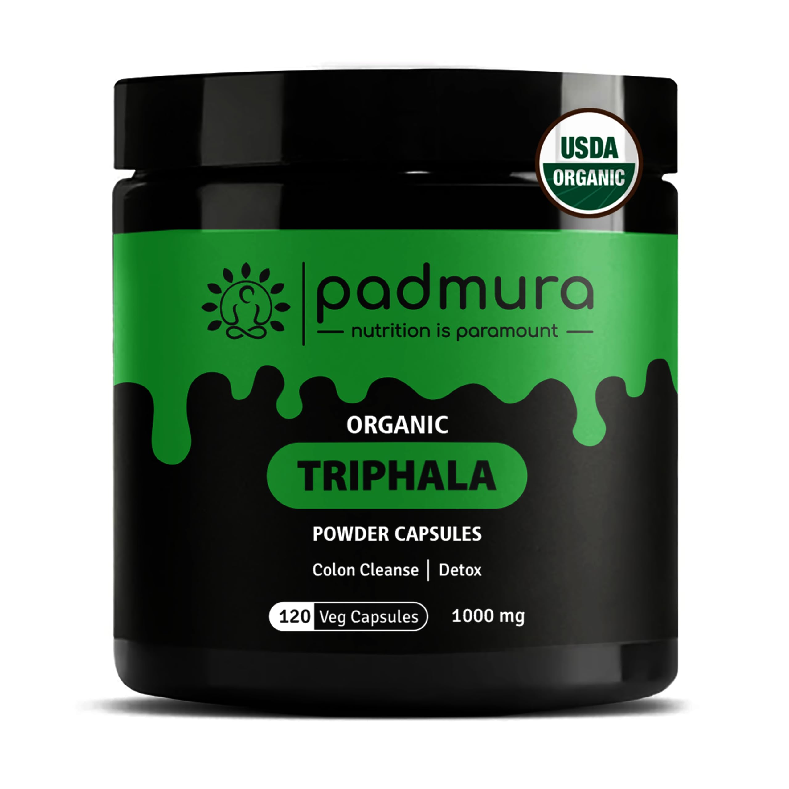 PADMURA Organic Triphala Powder Capsules 1000mg | USDA Organic Certified | Non GMO | Gluten Free | Vegan - 120 Veg Capsules