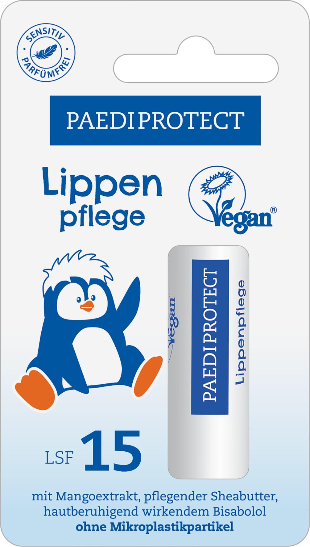 MADE IN GERMANY – Paetiprotect products are developed and produced in Germany by experts. Our formulations are continuously tested for effect and tolerability by independent dermatological institutions. WITHOUT ADDITIONS – Our lip care stick is perfume-free and vegan. Free from microplastic particles, dyes and preservatives. CARE INGREDIENTS – The included extracts sowi mango extract and shea butter have a skin-soothing, invigorating effect and protect the skin against dehydration and external influences. UV PROTECTION – Our care pen offers effective protection against the sun's rays thanks to SPF 15. It protects the lips from drying out and supports the natural moisture balance. REFRESHING CARE – the refreshing Peadiprotect lip care stick with SPF 15 has been specially developed for dry, cracked and sensitive lips and provides long-lasting care.PAEDIPROTECT Lippenverzorging LSF15MADE IN GERMANY – Paetiprotect-producten worden in Duitsland door experts ontwikkeld en geproduceerd. Onze formuleringen worden voortdurend getest op effect en verdraagzaamheid door onafhankelijke dermatologische instellingen. ZONDER TOEVOEGINGEN – Onze lippenverzorgingsstift is parfumvrij en veganistisch. Vrij van microplasticdeeltjes, kleurstoffen en conserveringsmiddelen. VERZORGENDE INGREDIËNTEN – De meegeleverde extracten sowi mango-extract en sheaboter hebben een huidkalmerende, verkwikkende werking en beschermen de huid tegen uitdroging en invloeden van buitenaf. UV-BESCHERMING – Onze verzorgingspen biedt dankzij SPF 15 effectieve bescherming tegen zonnestralen. Hij beschermt de lippen tegen uitdrogen en ondersteunt de natuurlijke vochtbalans. VERFRISSENDE VERZORGING – de verfrissende Peadiprotect lippenverzorgingsstift met SPF 15 is speciaal ontwikkeld voor droge, gebarsten en gevoelige lippen en verzorgt langdurig.