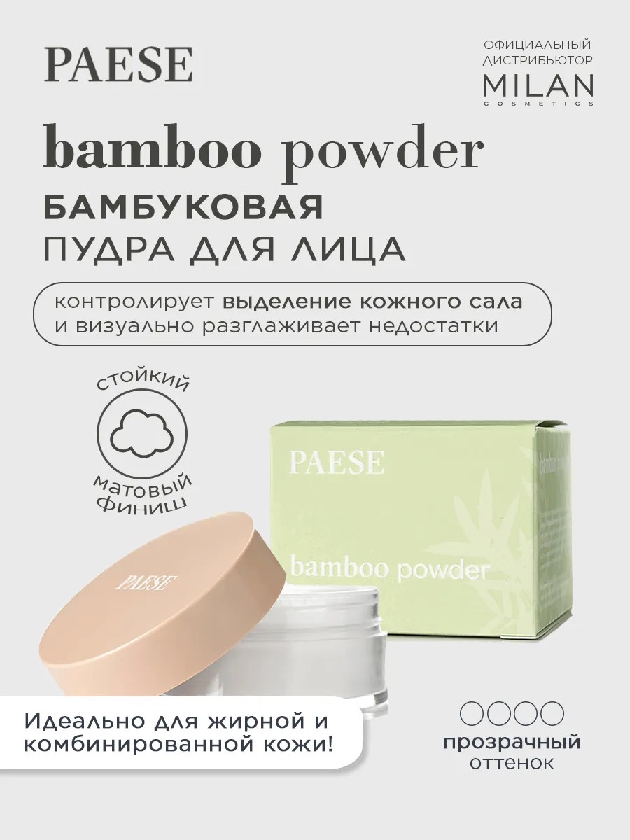 Бамбуковая рассыпчатая пудра для лица Bamboo Powder от польского профессионального бренда Paese обеспечивает стойкий матовый финиш, не перегружая макияж и не забивая поры.