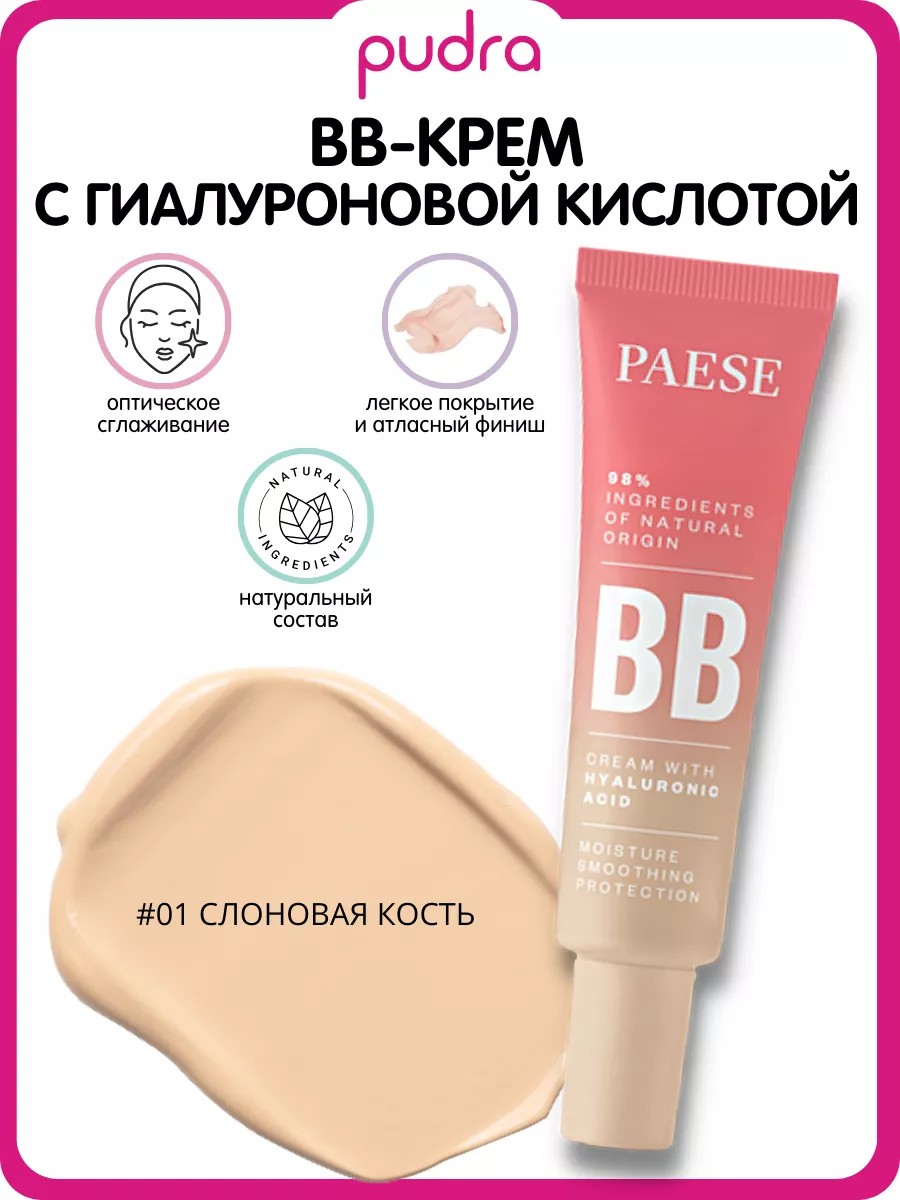 КомплектацияPAESE Тональный крем BB CREAM with hyaluronic acid 30 мл