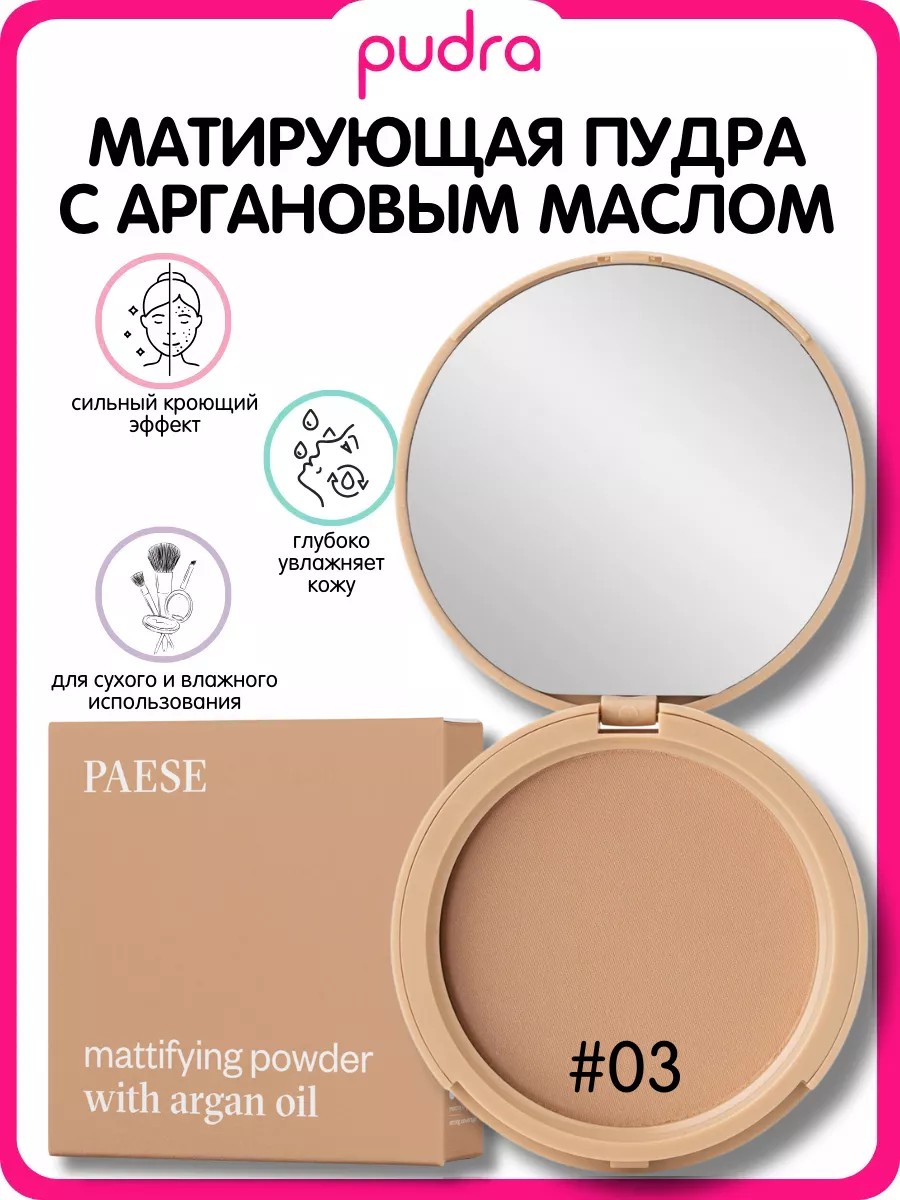 | Комплектация | PAESE Пудра компактная матирующая c аргановым маслом, 8 гр |