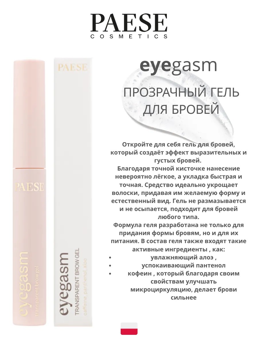 Paese PAESE eyegasm, прозрачный гель для бровей